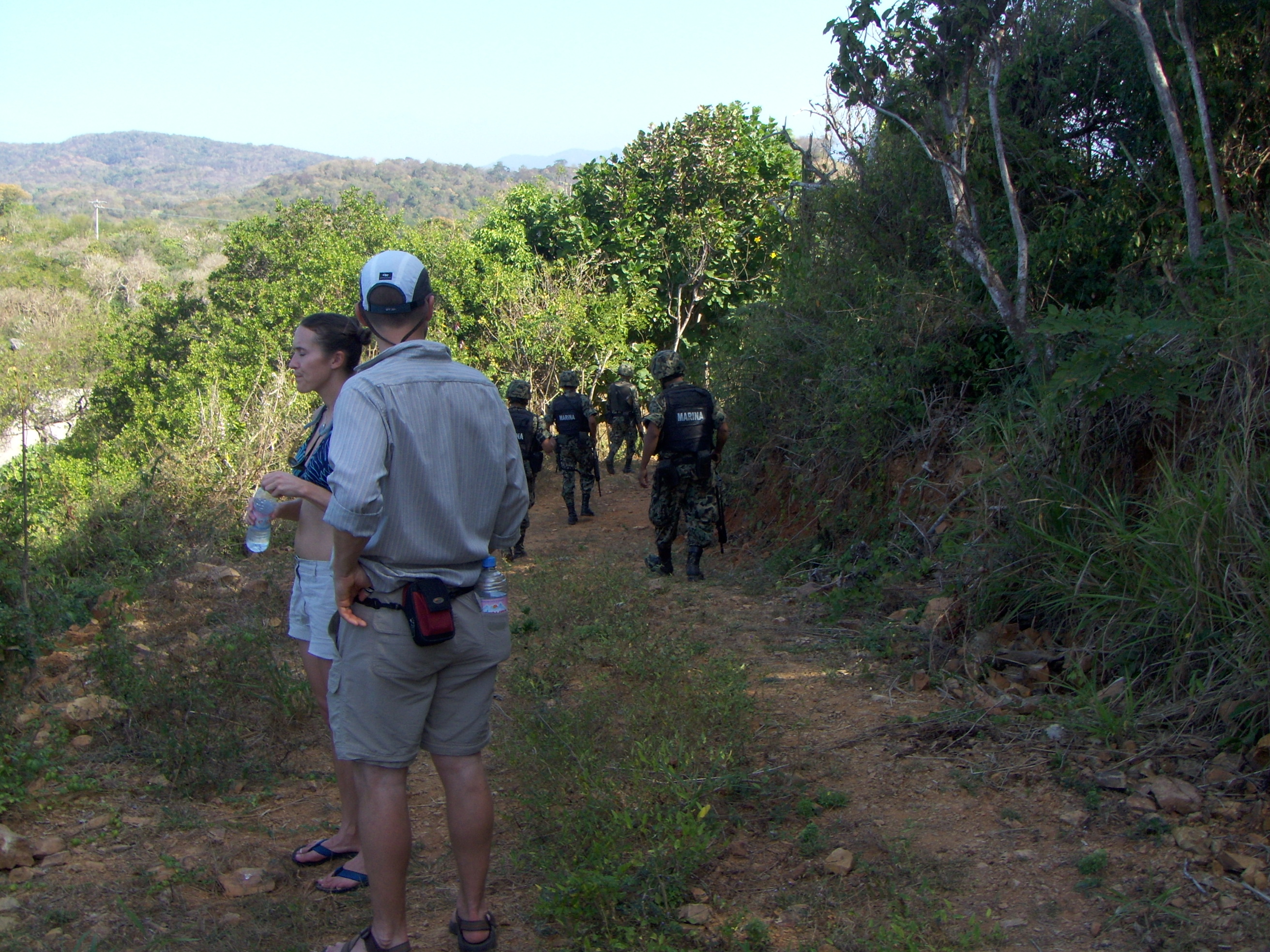 Después el correr del dia, y desayuno, caminamos al sur de aquí. ¡Encontramos un pelotón de soldatos de marinas en la selva! Felizmente, no fue necesario a usar las armas del fuego.
