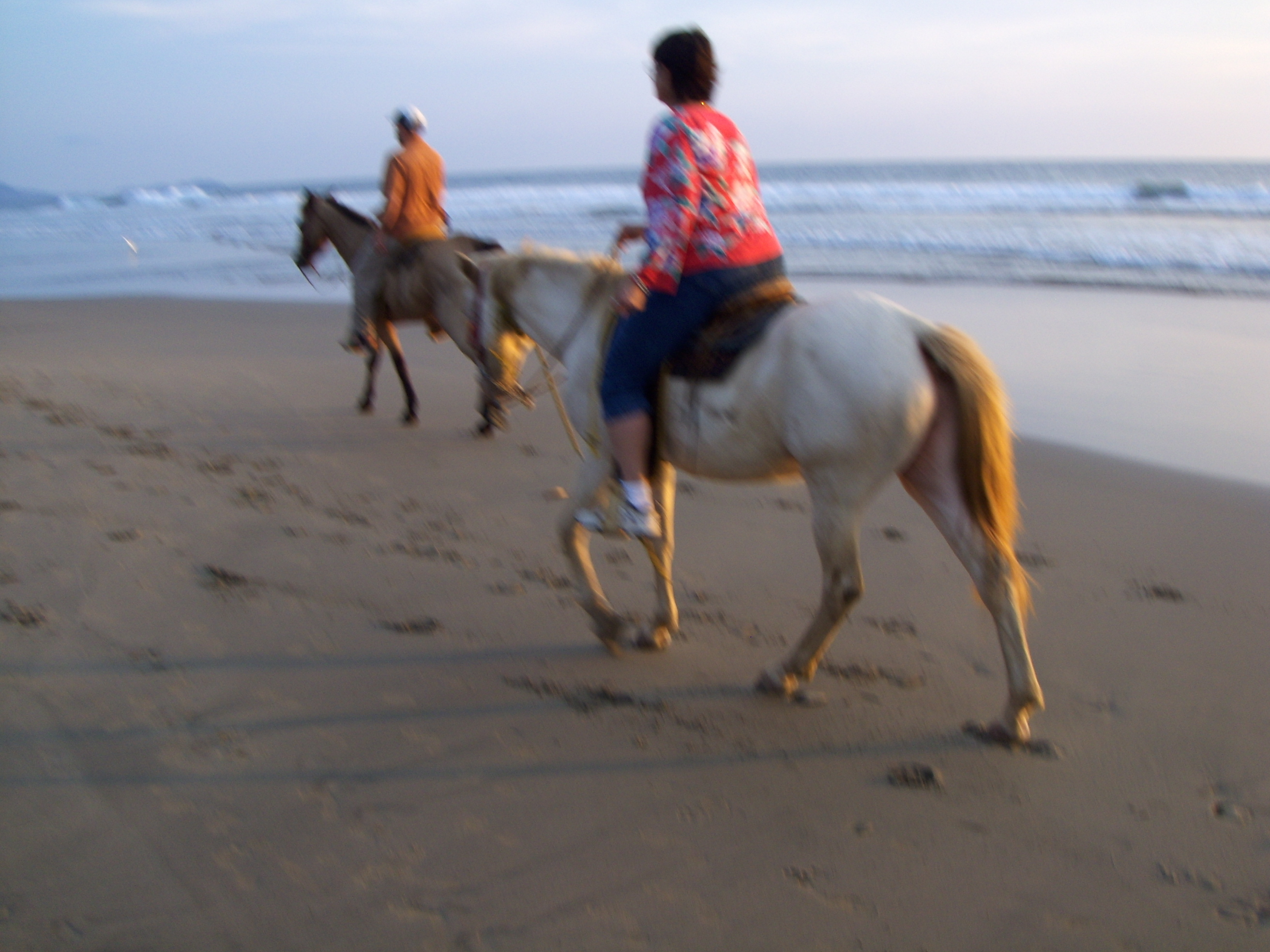 Viernes, diez-y-seis de Enero: “D” y “E” fueron montan caballos ayer a las cinco de la tarde con el otro ‘Luis.’ Nosotros otros fuimos a “Bistro R” a espera por los caballos a volver. También, fue una fiesta de soltar algunas tortuguitas-de-mar allí. Tomamos muchos fotos de “las caballeras” y el soltar de las tortuguitas.