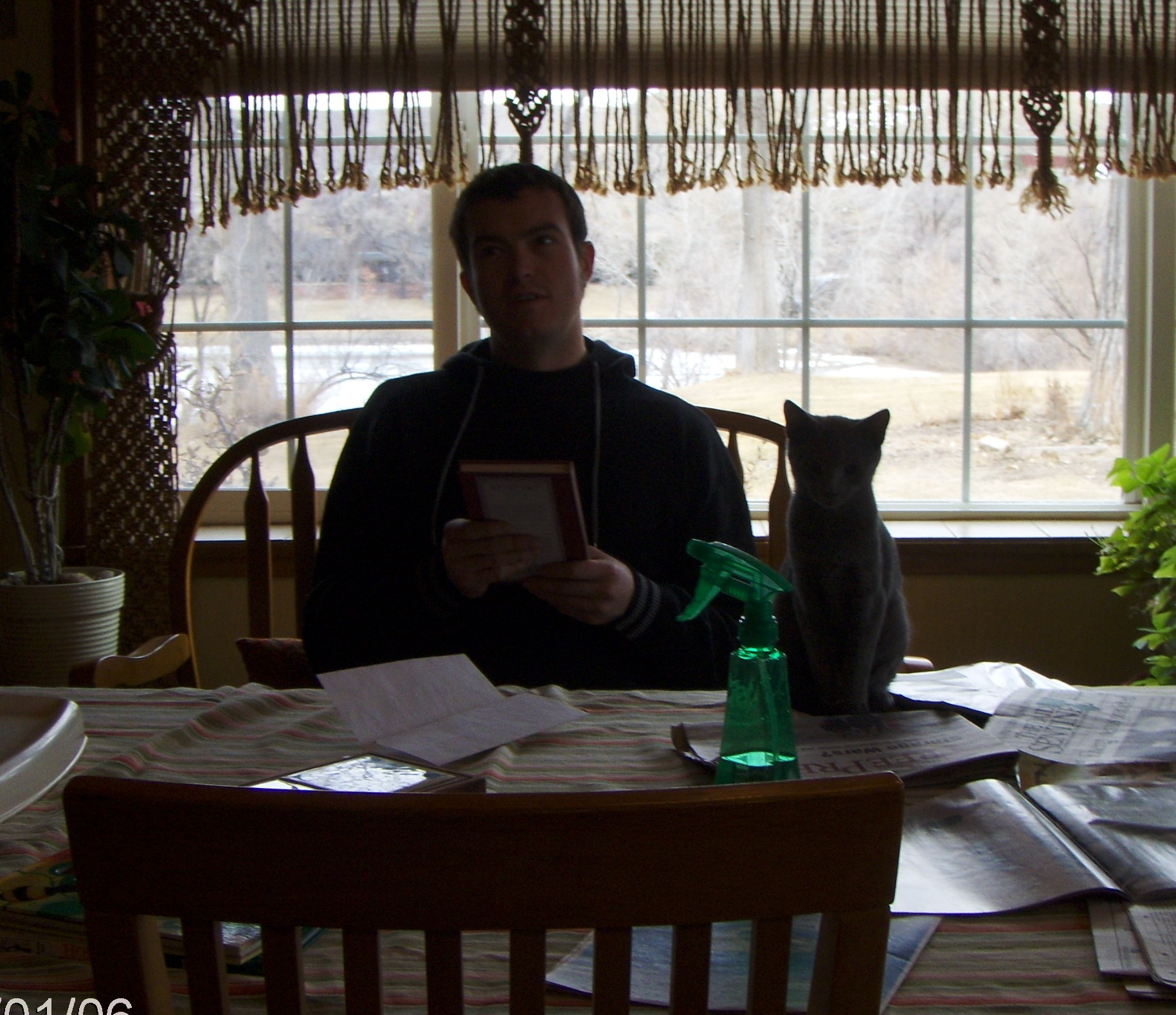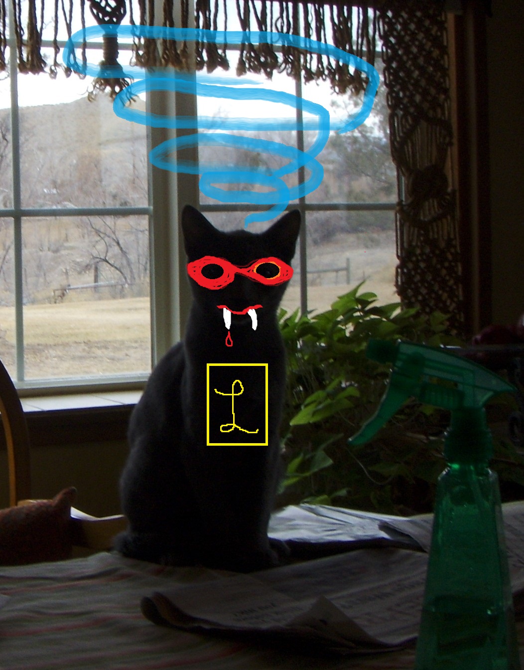Nuestro gatito, “Wall-dough” (el gato-nieto) estuvo loco. Es posible la luna, o algo mas extraño, hizo el gato un poco loco. Fue a ir de atacar un perro mucho mas grande — el perro de mi hijo.