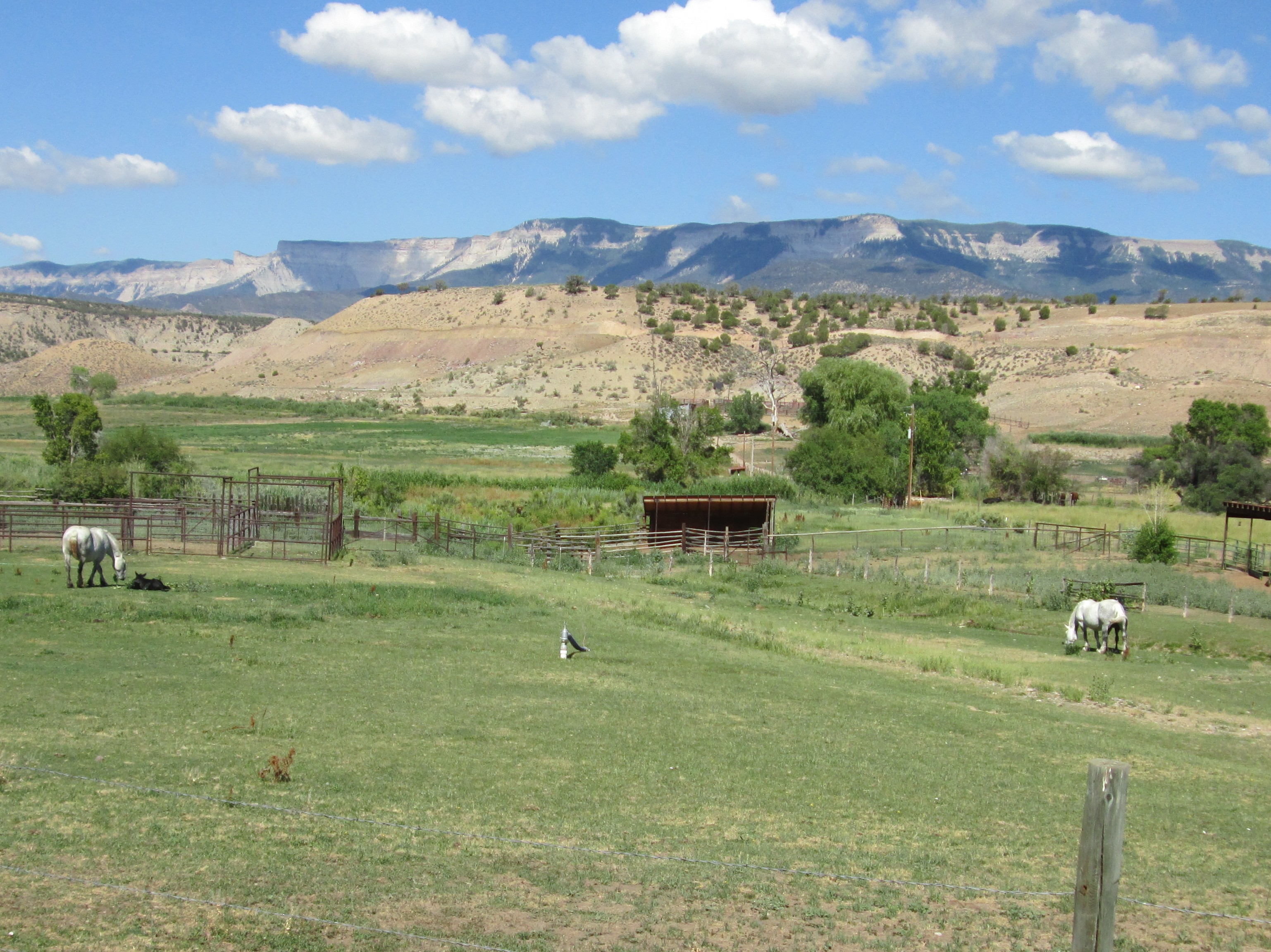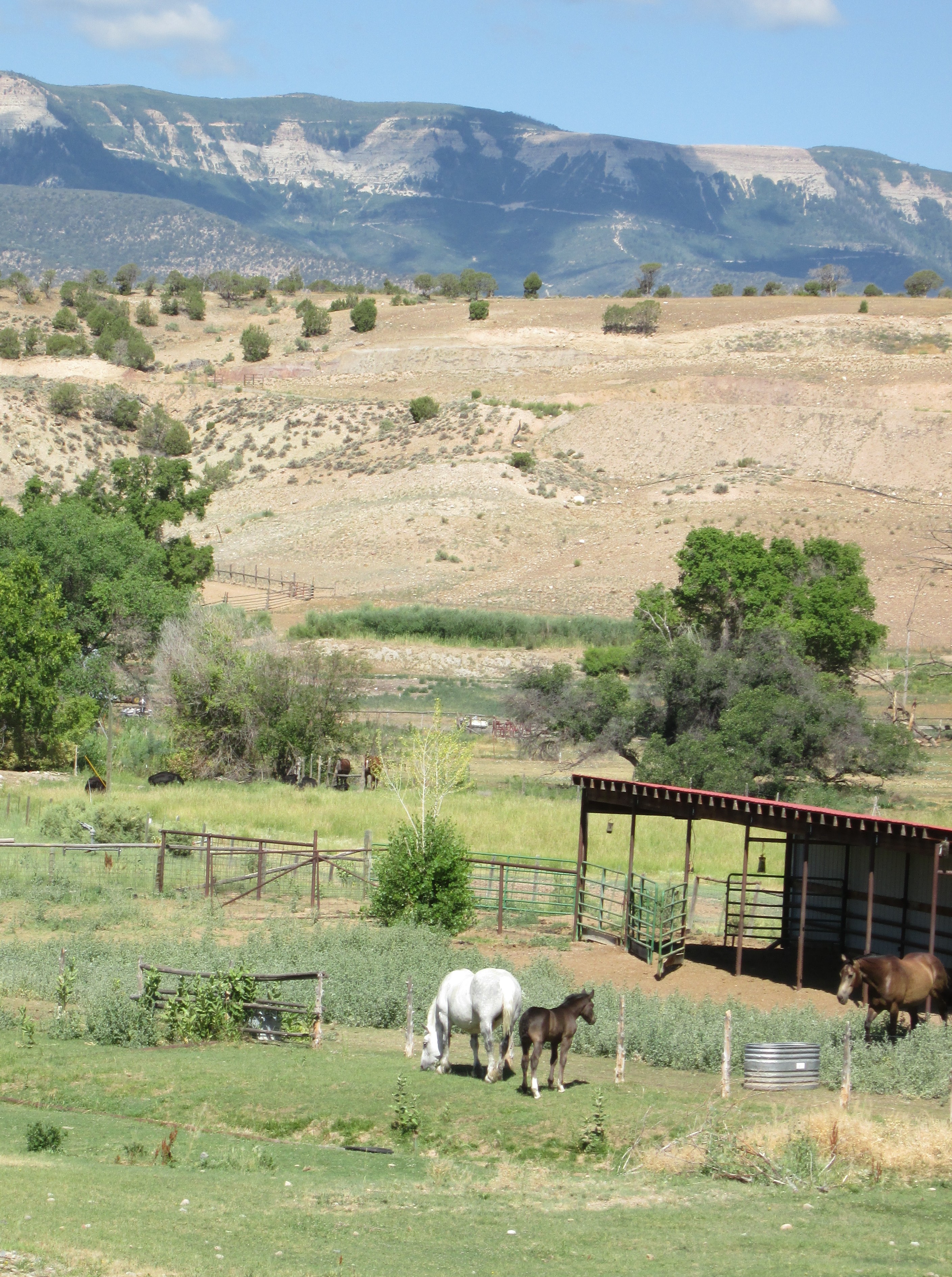 The ranch has some impressive backdrops. We are looking at the southeasterly corner of the Roan Plateau. (But you know what? The horses could be in the middull of Texas, or Kansas, or eastern Colorawdough, and regard and experience life just the same… Maybe not!)