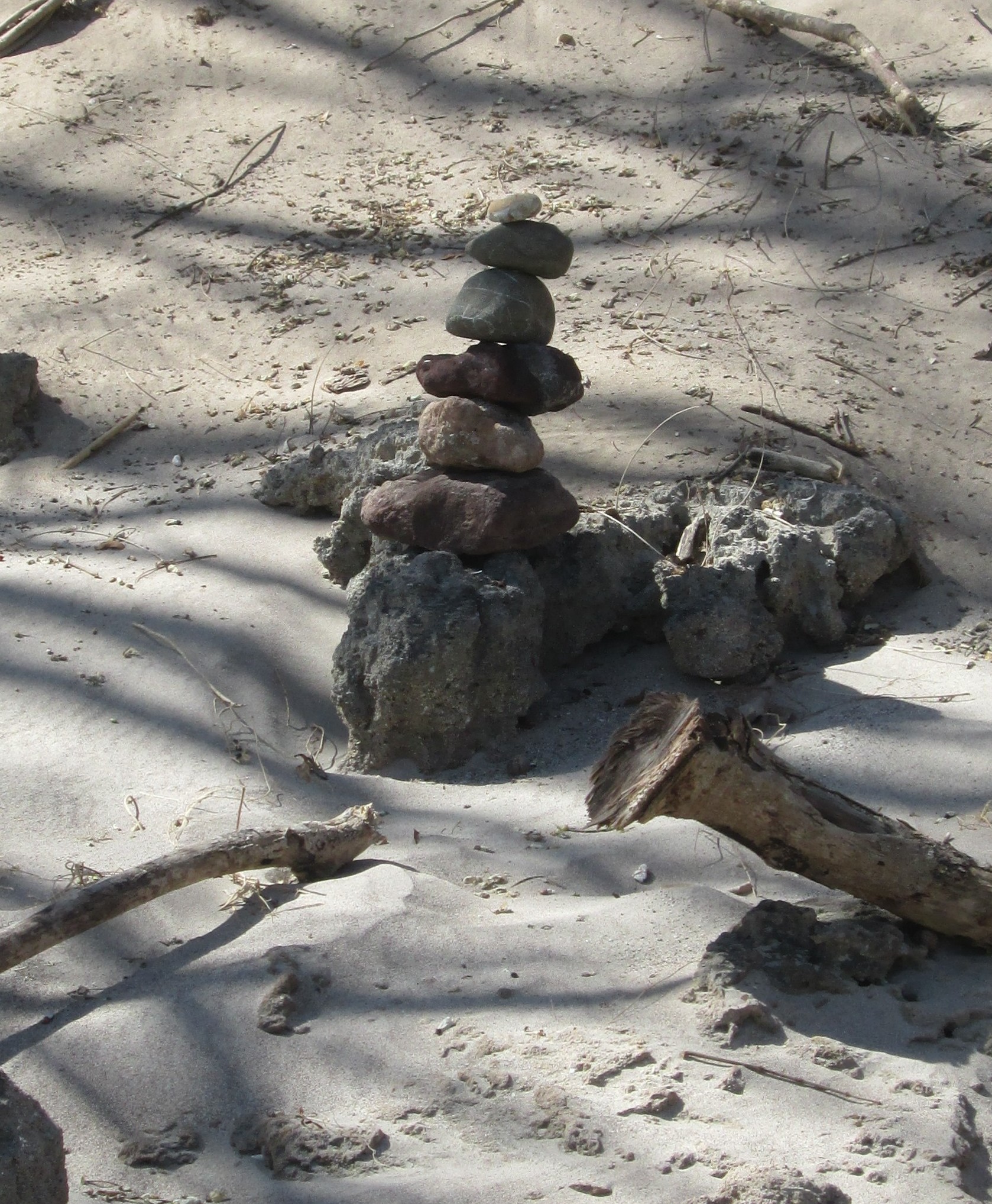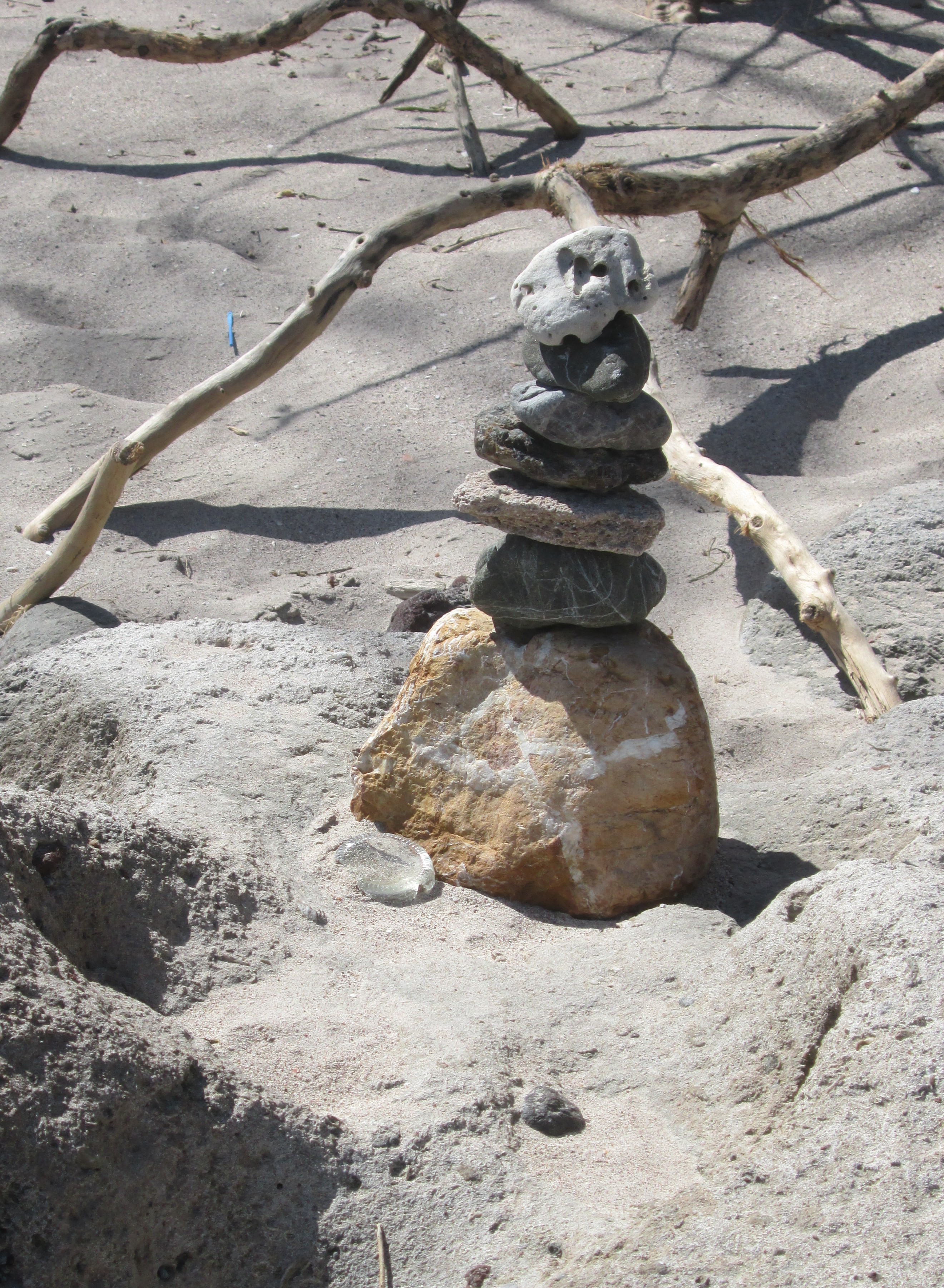 Local (gringo) resident lady with dogs told Betty that that is what Bob does. Periodically walks the ocean edge piling up rocks. Hoodoo-assemblage. He doesn’t “do” Inuk-type fabrications, just what you see here.