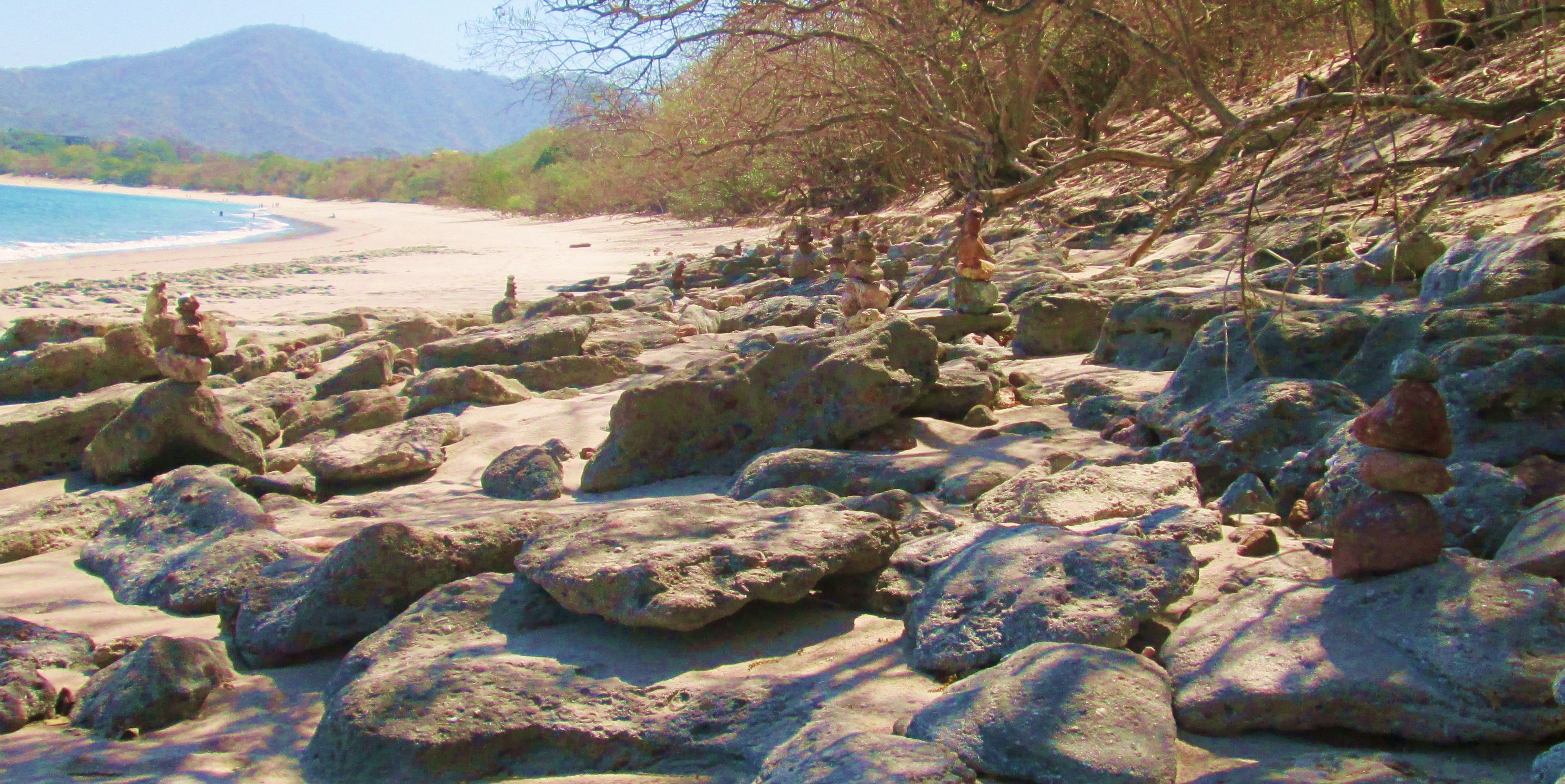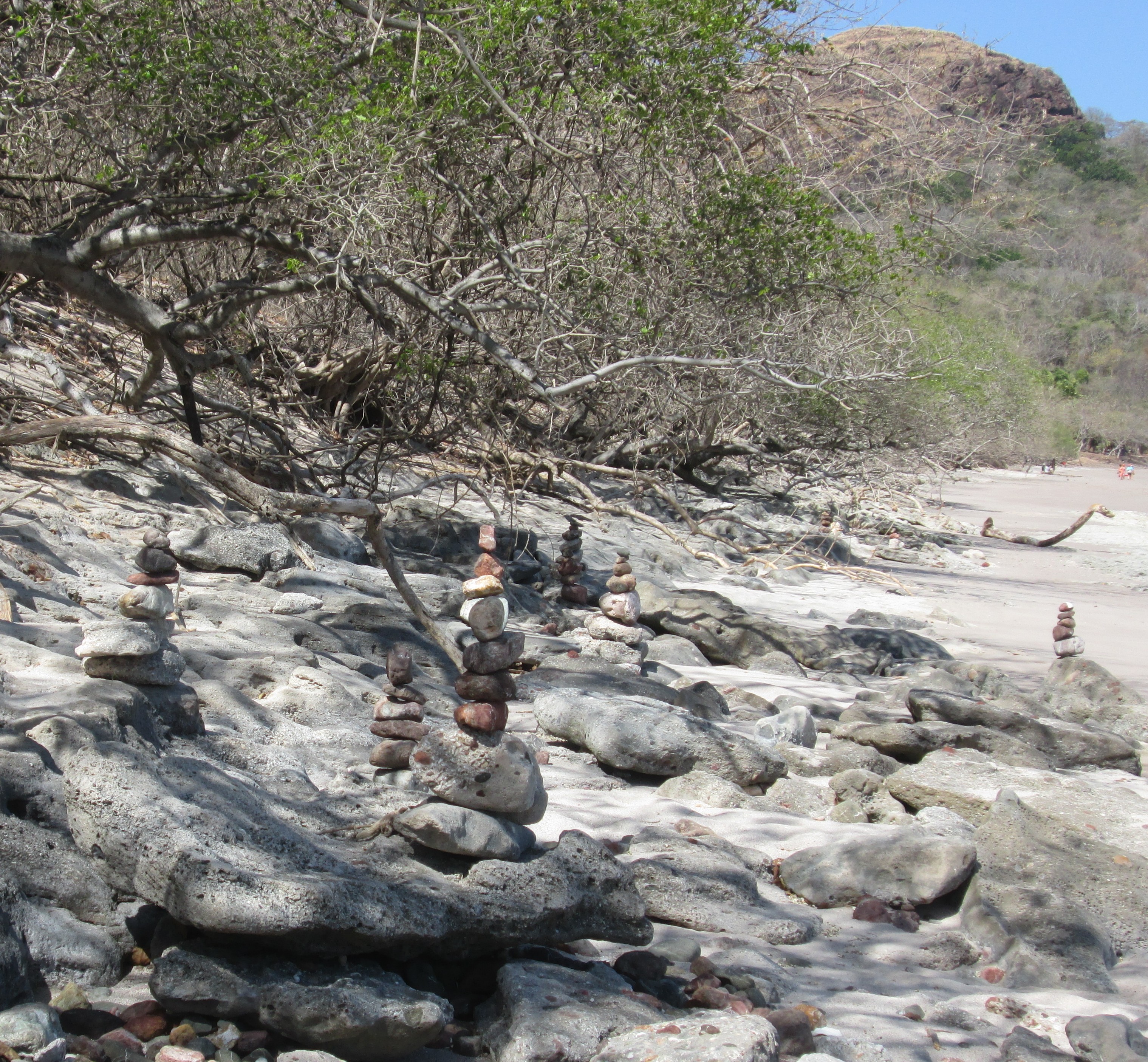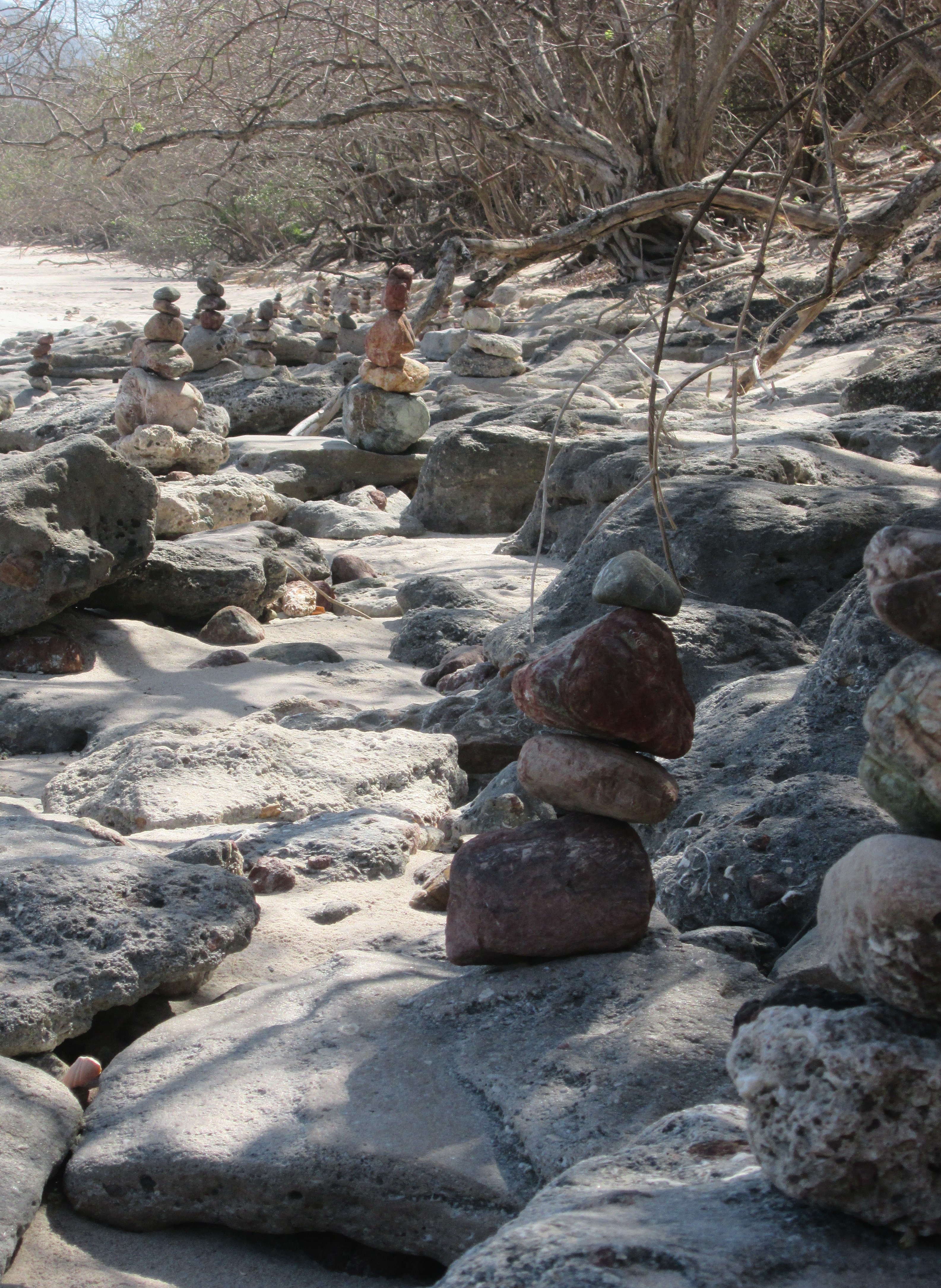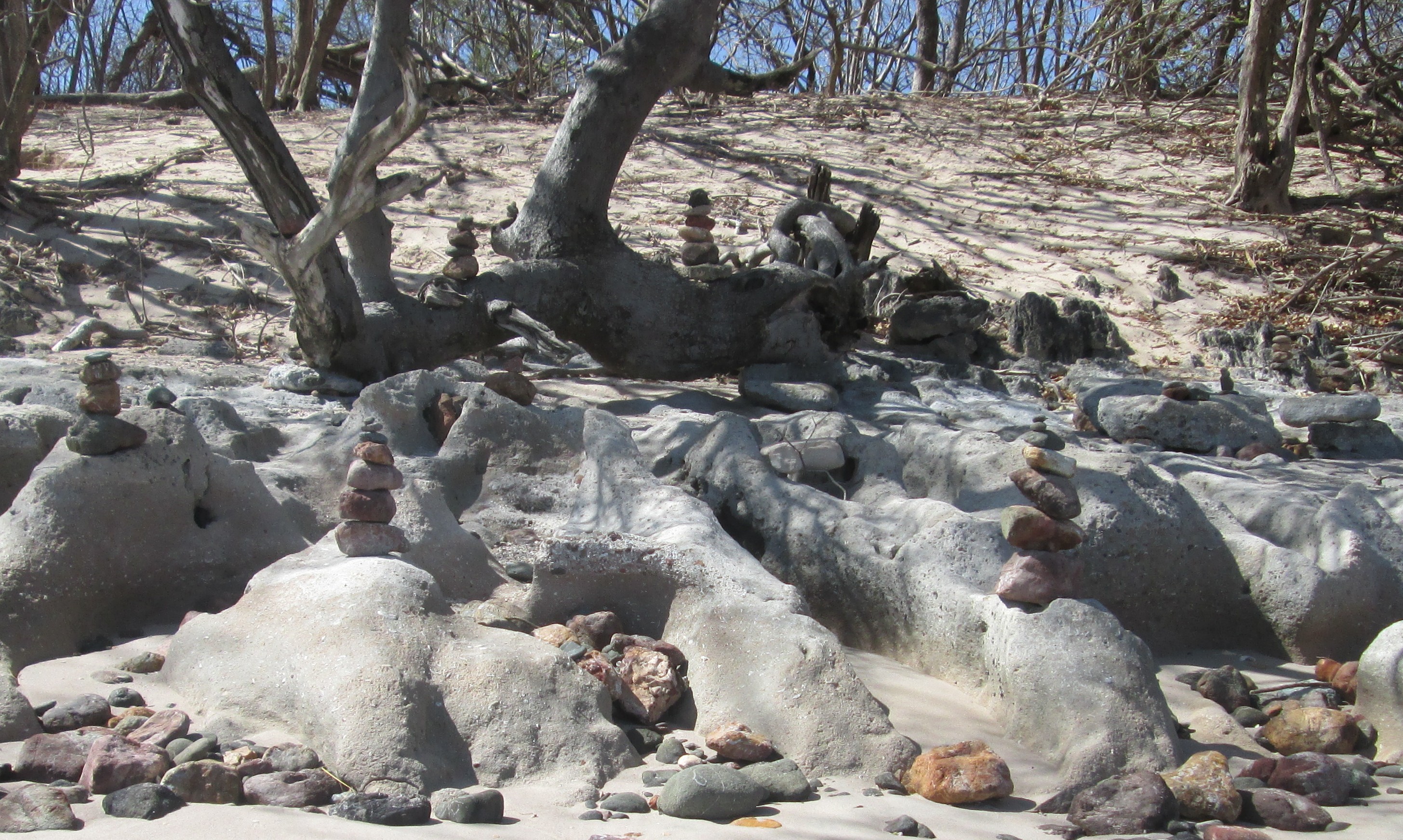 I don’t get to the beach often. When I’m to sojourn in the vicinity, I try to run barefoot along the ocean’s edge every other day. I am somewhat near-sighted, but still try to run without the specs when I can. So I plodded along Playa Conchal maybe six times in the two weeks I was recently there. And on my next-to-last run, thought I had seen gnomes or dwarf-like beach creatures on the way out … but didn’t realize that there REALLY WERE dwarf-like gnome-thingies until the return slog. (The light must have been better.)