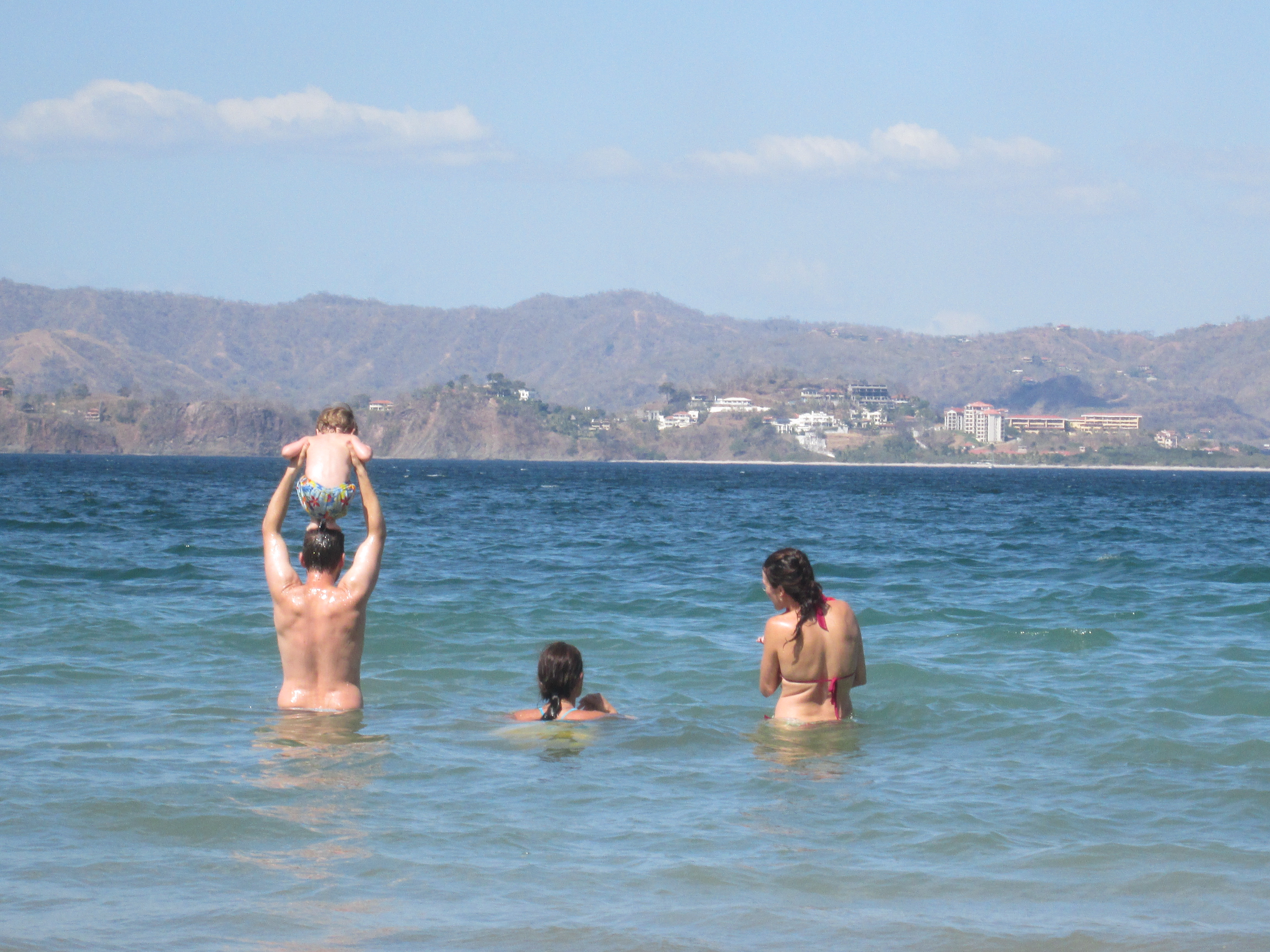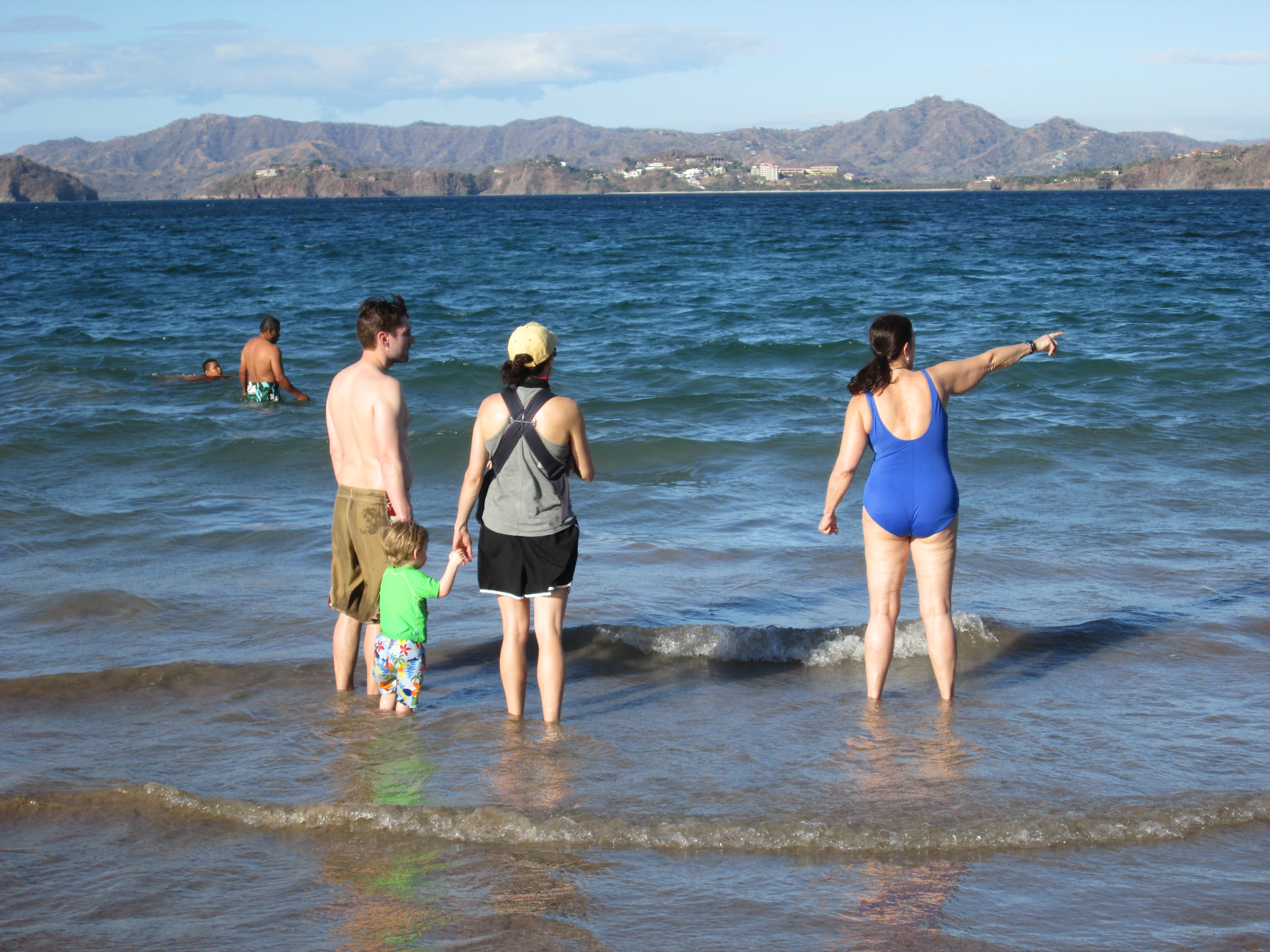 “Ooh! look at that!” Ben-Rachel-Betty (& grandkids) take it all in. Across the “bay” from us is the more upscale Playa Flamingo, north.