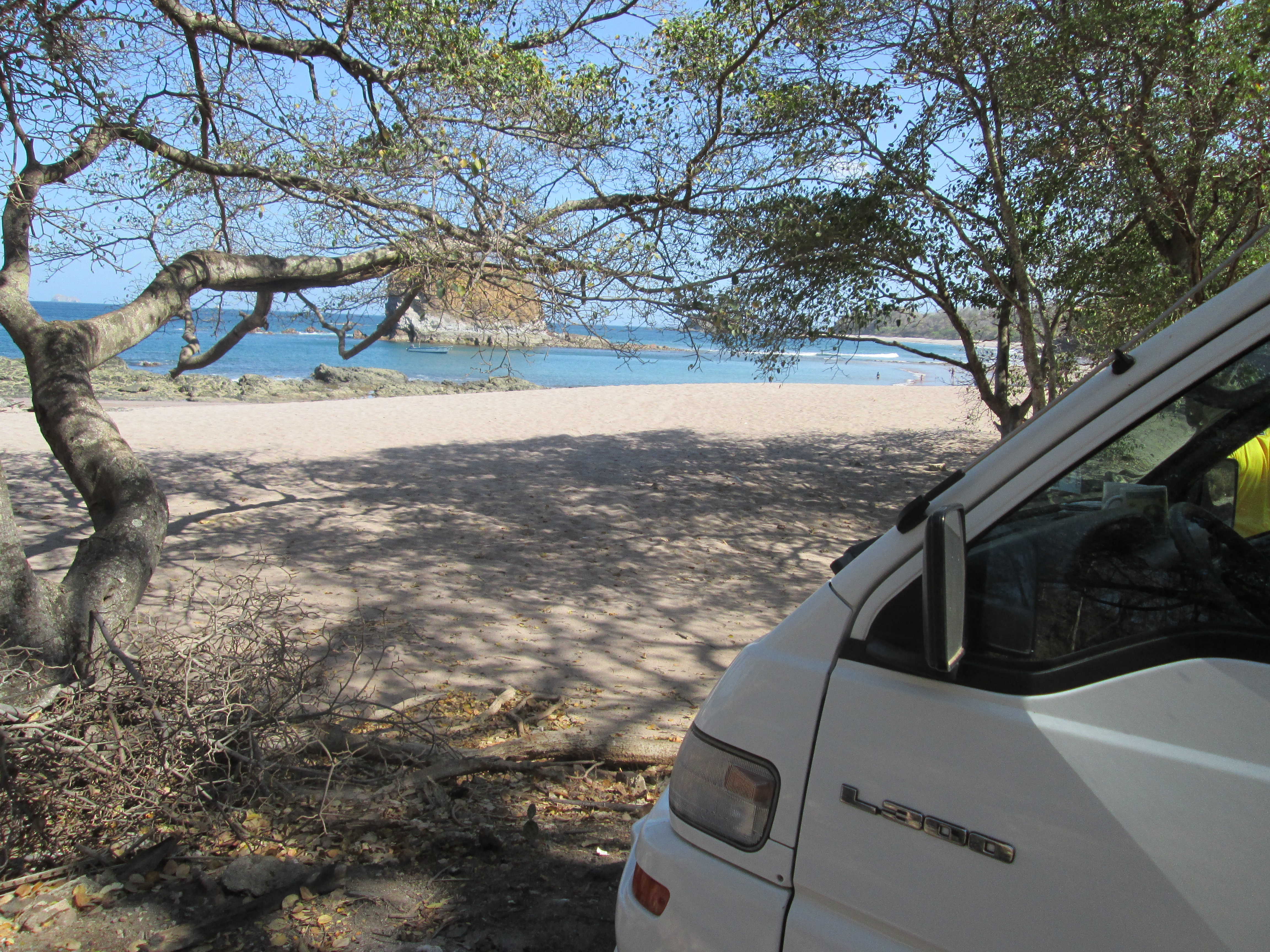 “Our van” apparently doesn’t mind the view at Playa Piratas — preferable, I’m sure, to the usual view back at the rental agency parking lot.