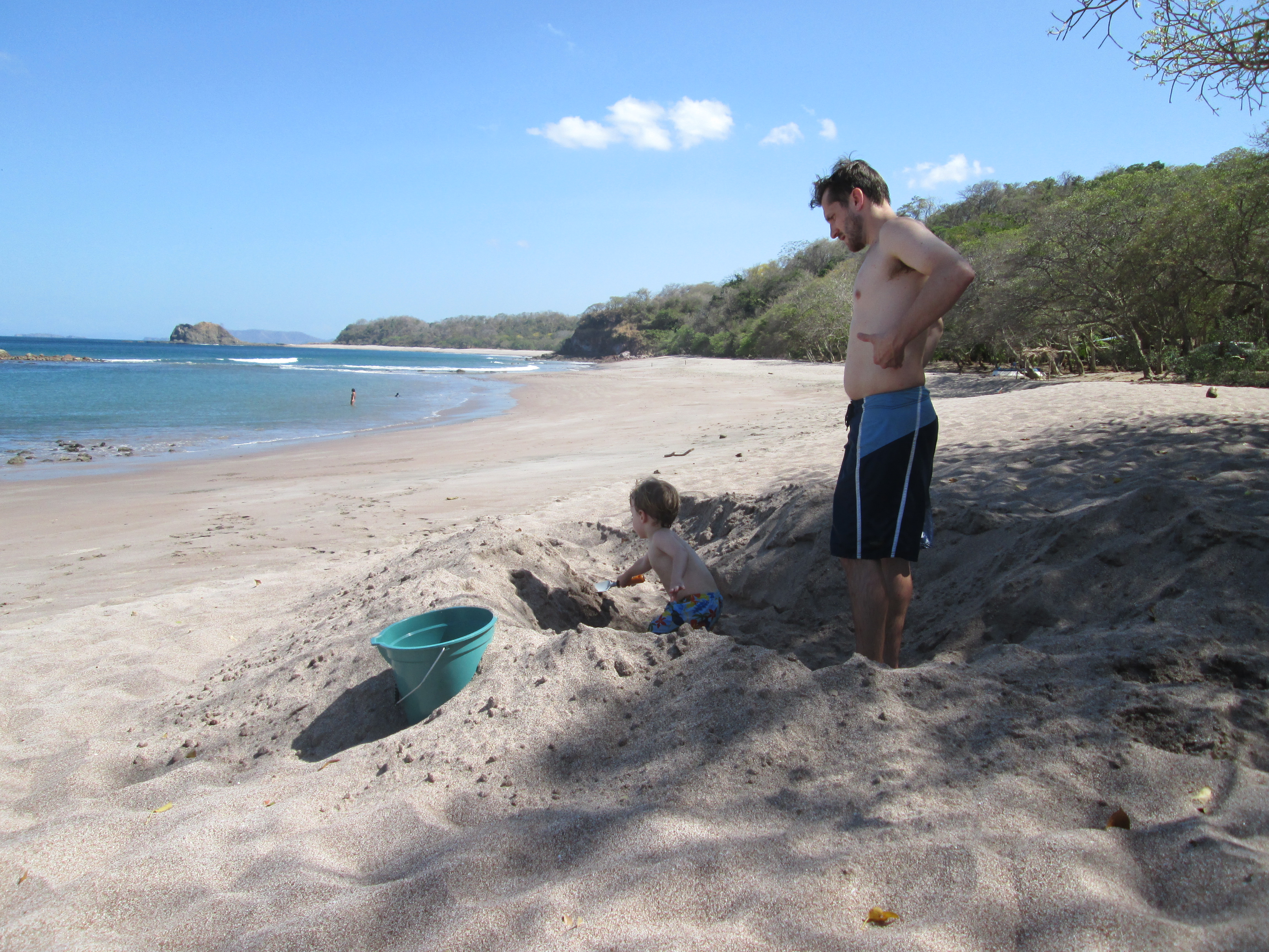 Also not pictured was a short visit to Playa Grande. P.G. adjoins Tamarindo (it’s just north of T) and allegedly is the largest longest widest beach in Costa Rica. Tom and Ben went boogy-boarding (and seemed to be “pumped” from an hour or so of that). I’d estimate that it is a few miles in length — possibly 3 or 4, and the portion we were at was 100 yards wide or more.