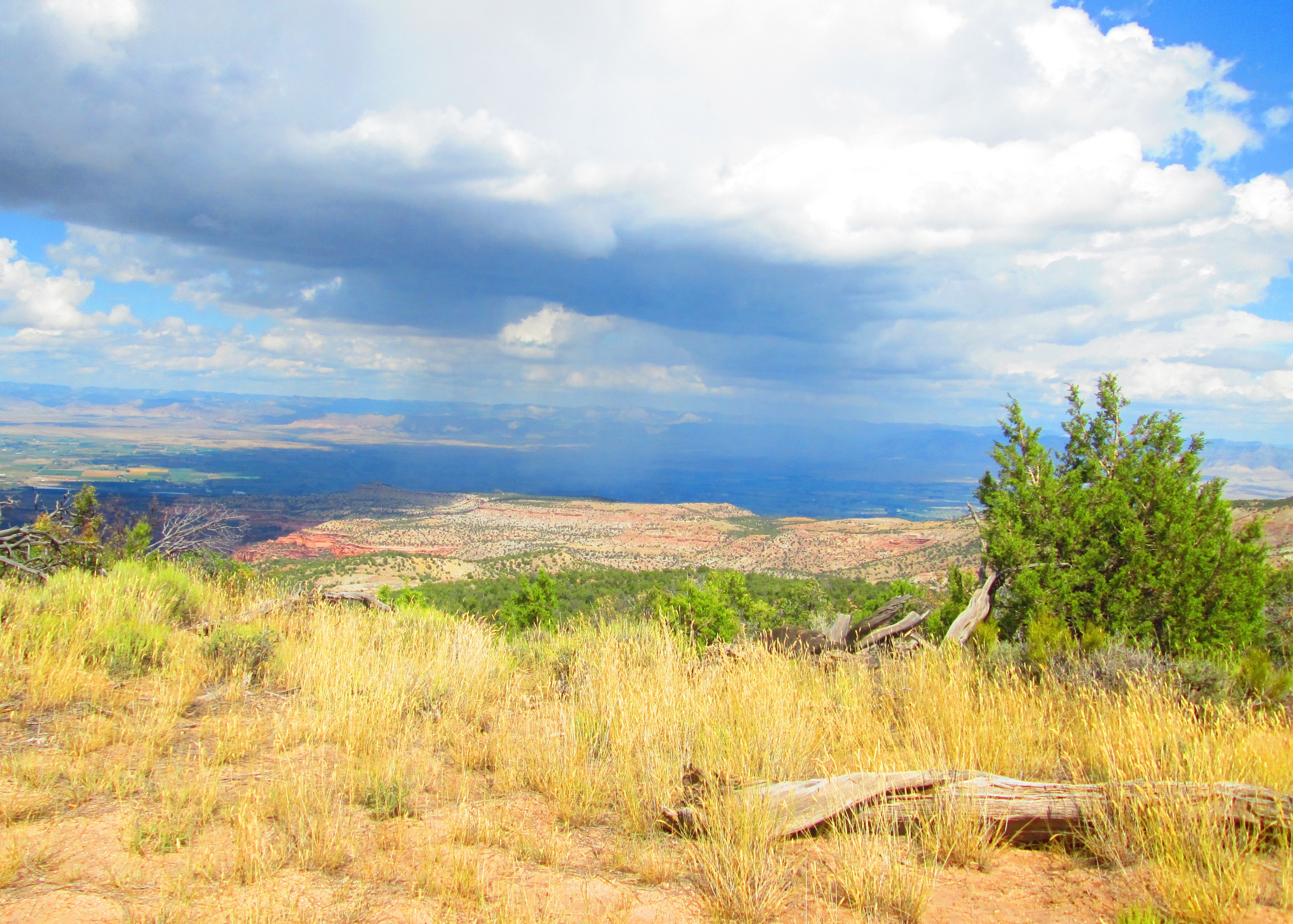 Also a couple weeks back, Betty had never been up on Black Ridge (just west of “the Monument”) before.  We rode our bikes, the dogs looked for rabbits to chase, a sublime time.  Above, looking down and north towards the Fruita area.