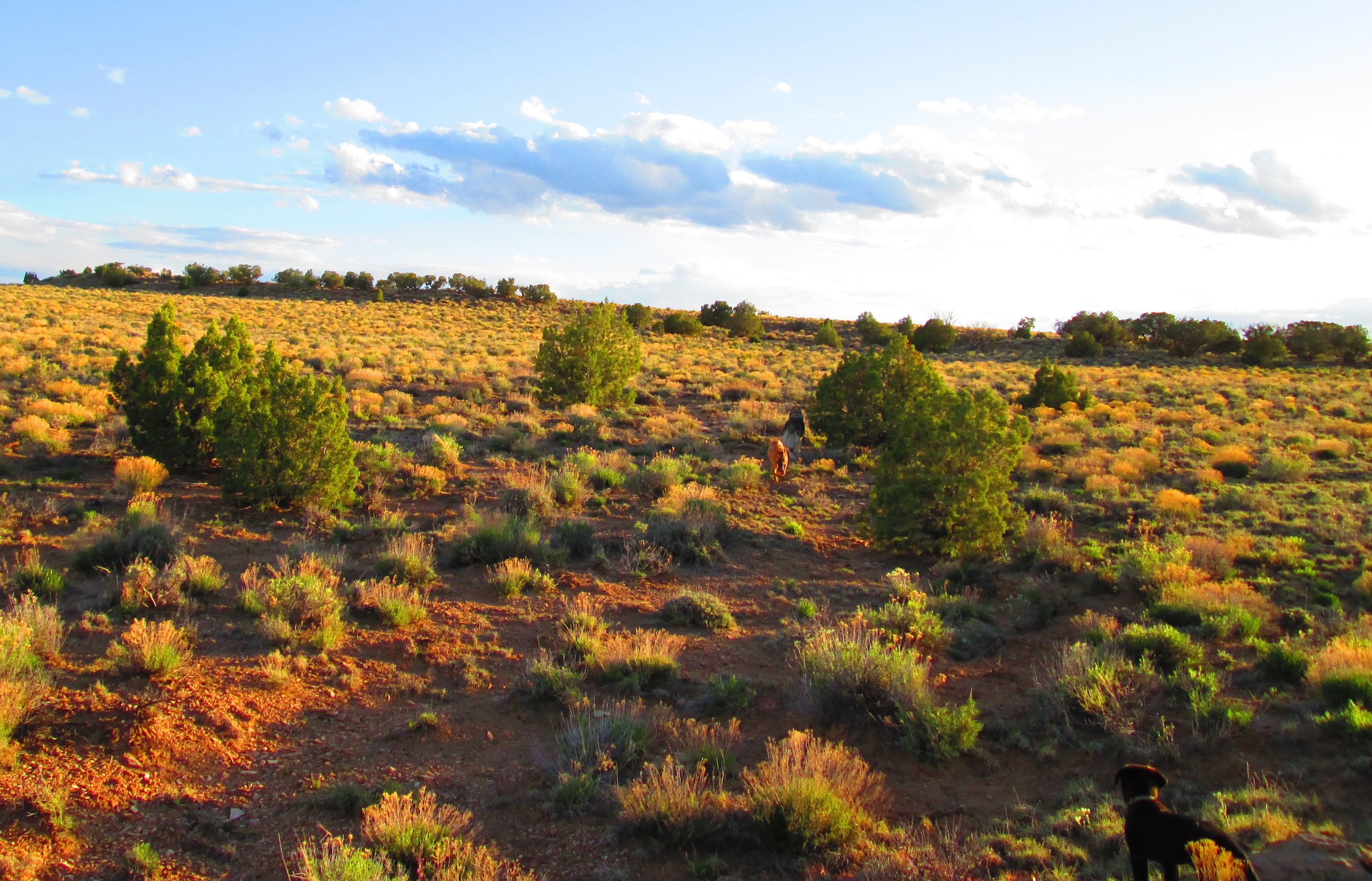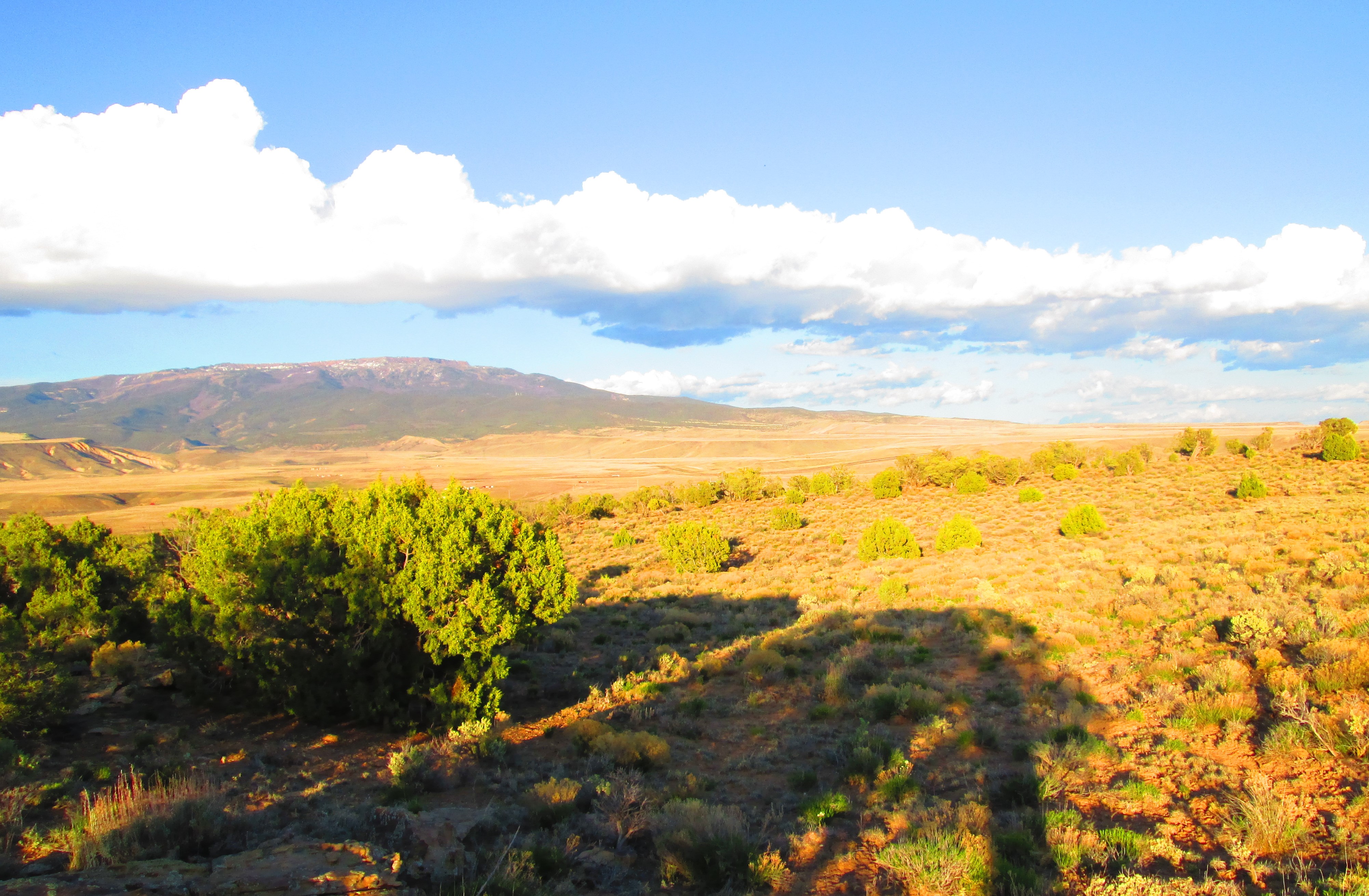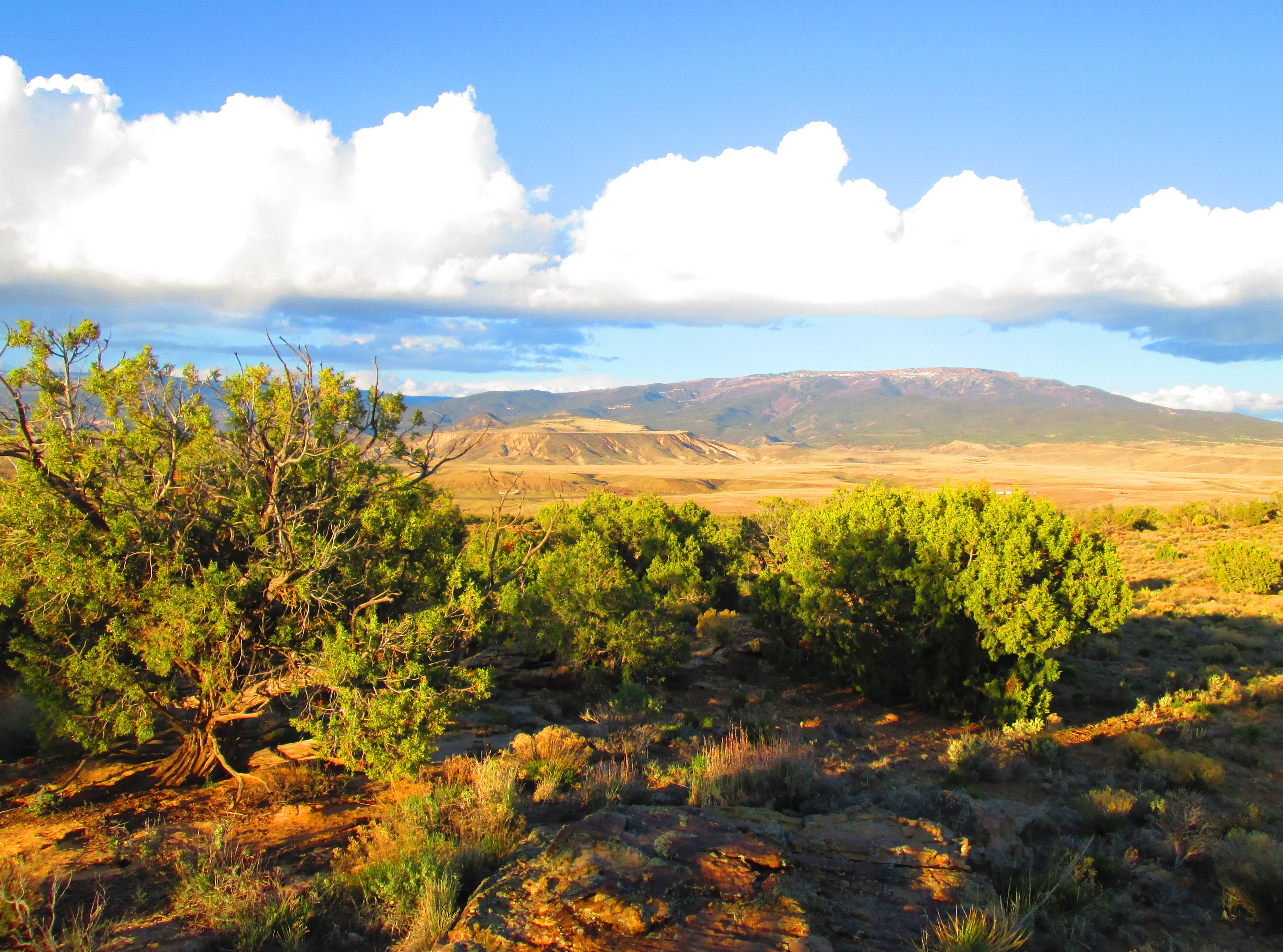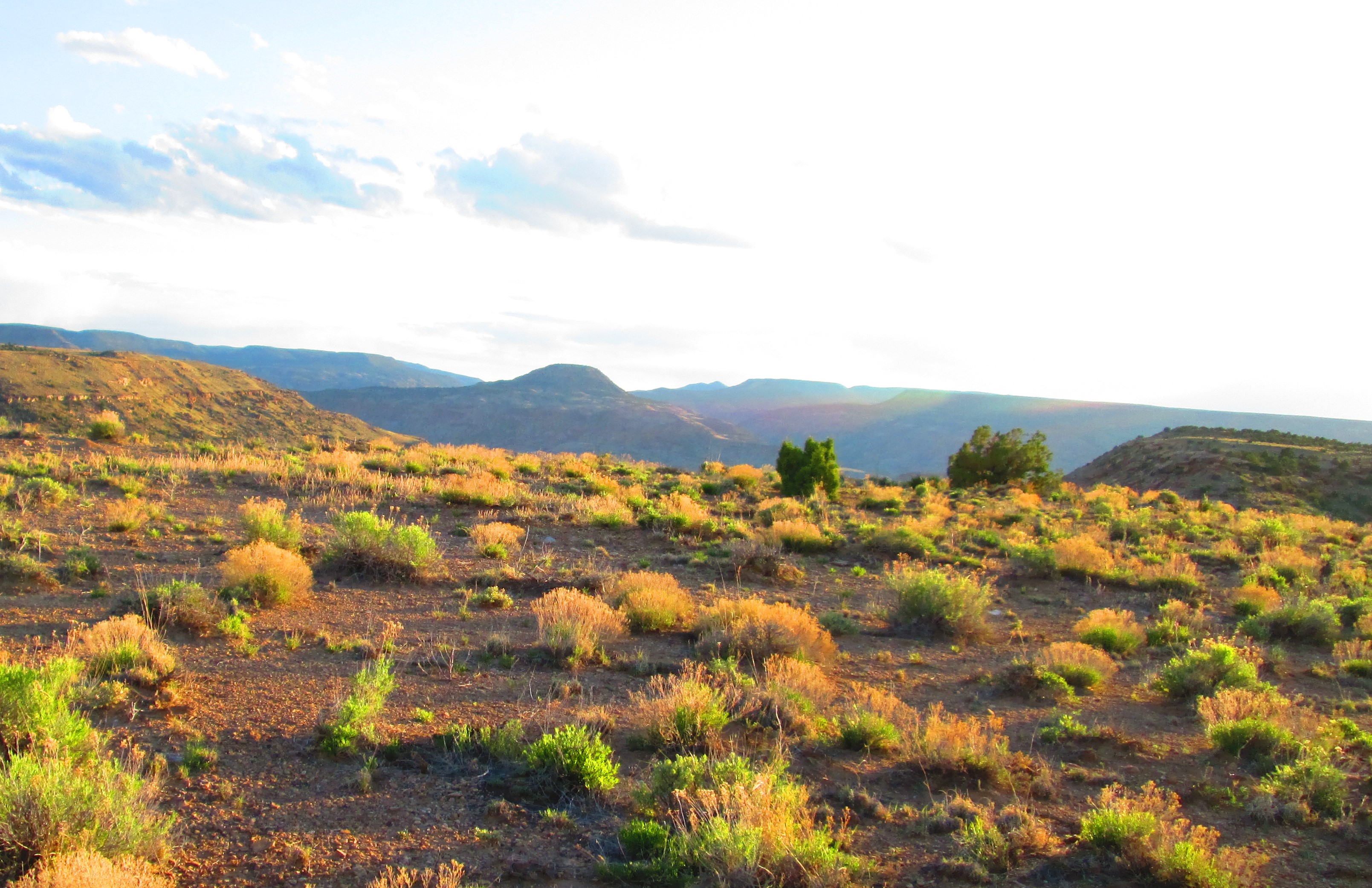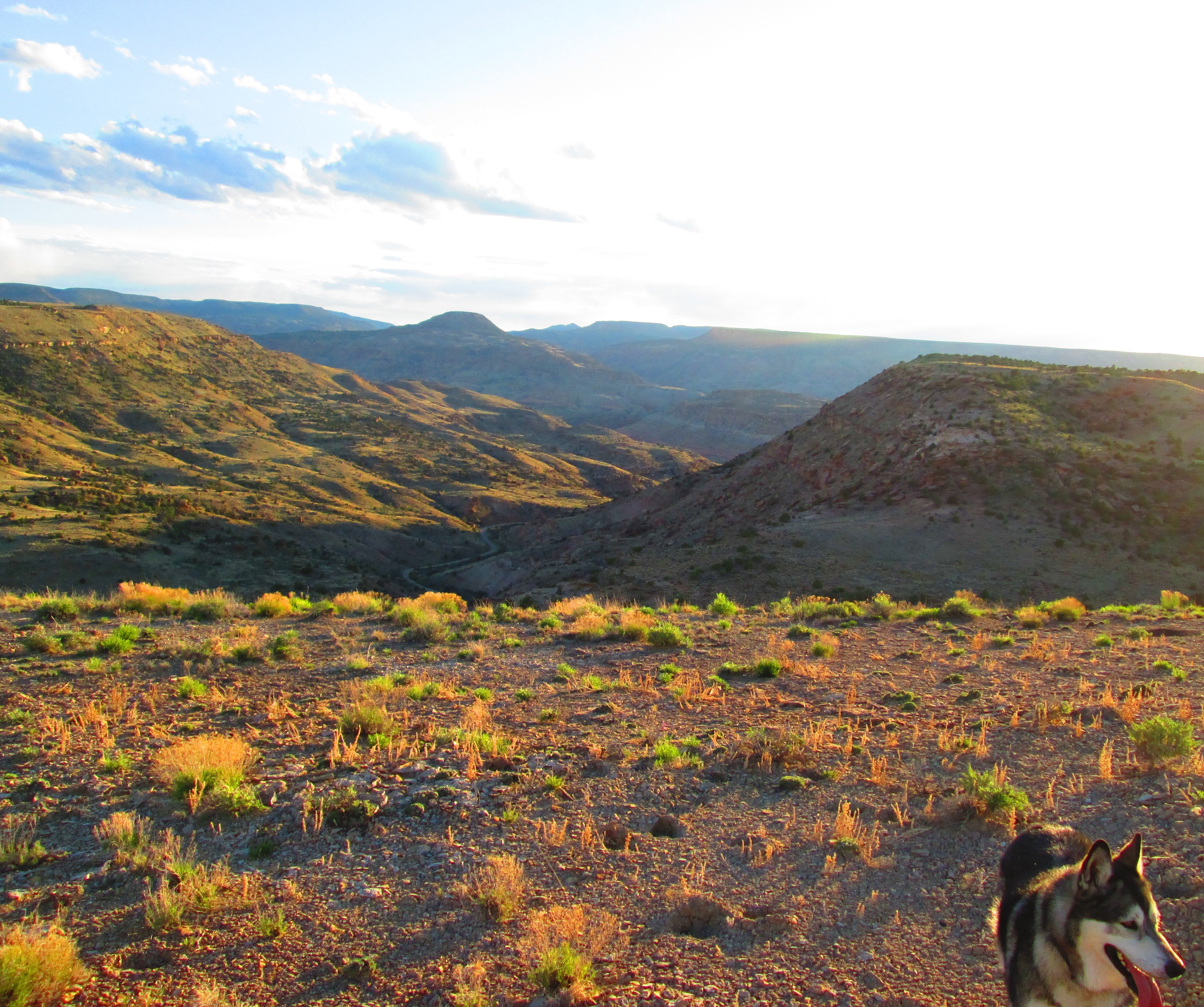Looking west, the Dominguez Wilderness area on the horizon, Triangle Mesa in the middle. Unseen is the Gunnison River a few hundred feet below the ridgeline between me and Triangle Mesa. This area is also on the maps as “Bridgeport.”