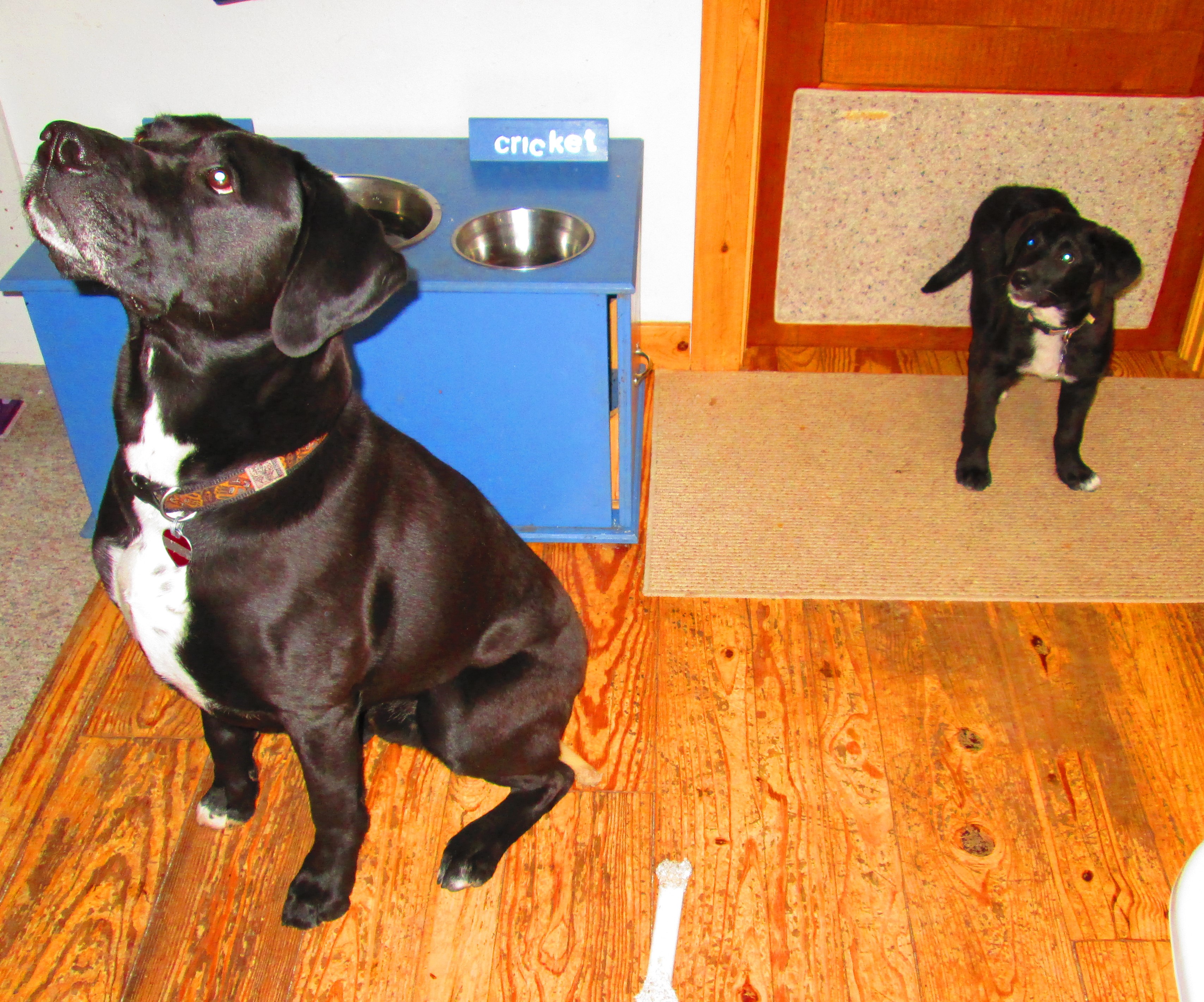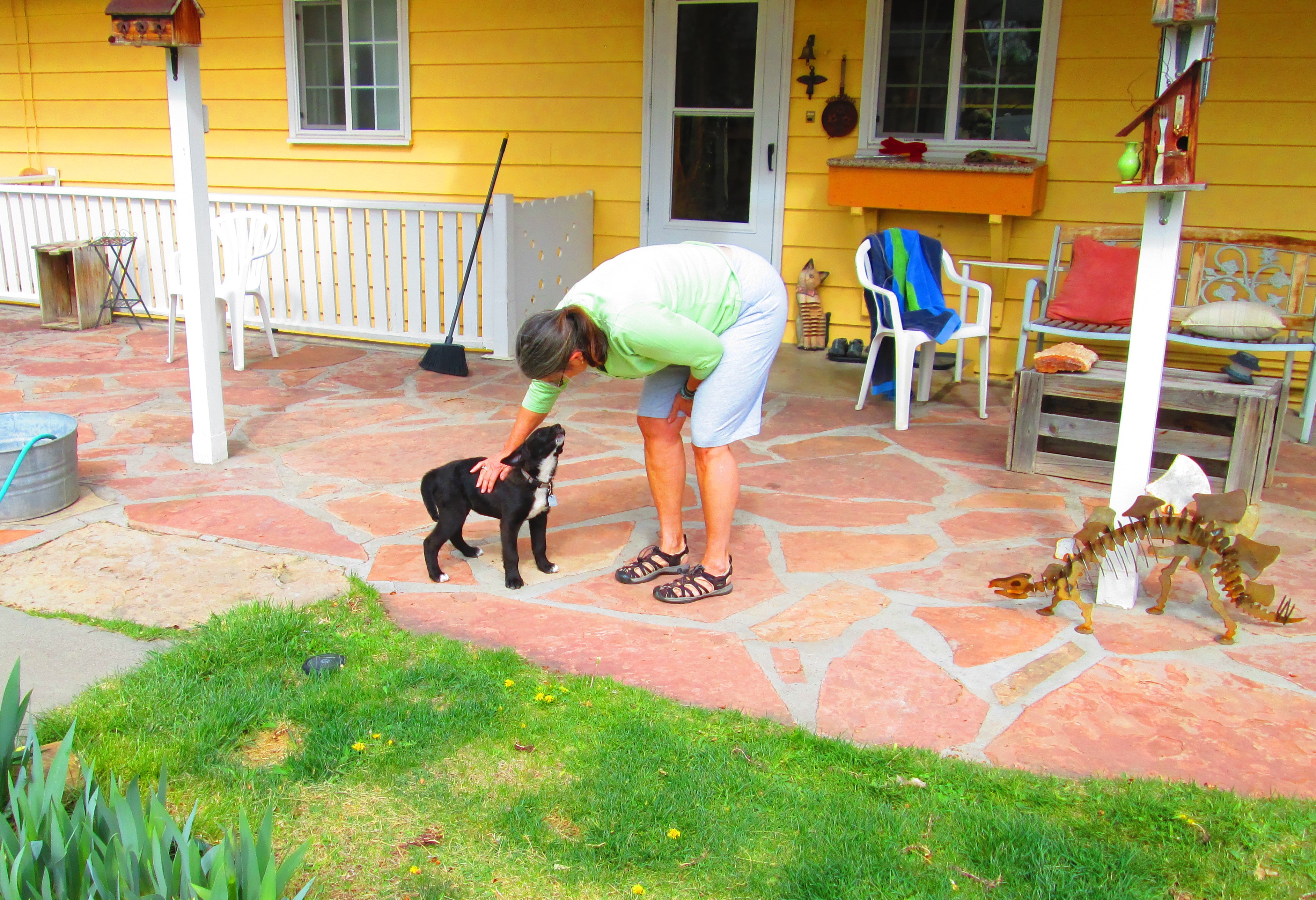 Betty and her new dawg, Jake. A mix of … Chesapeake? Labrador? Border Collie?