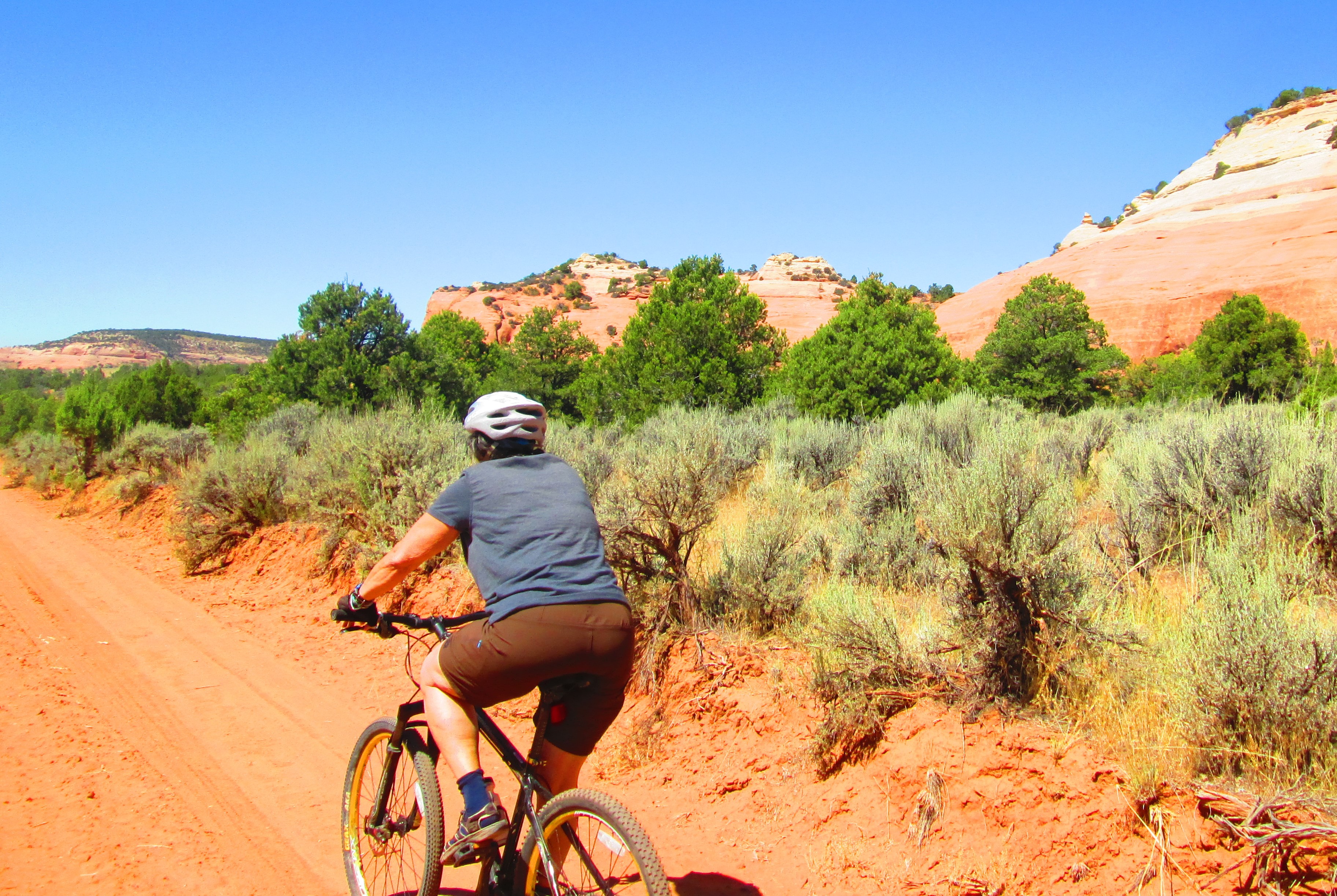 You suppose the Anazazi occasionally sought shelter in there?  At Knowles Canyon trailhead, we hopped on the bikes to ride to Utah.