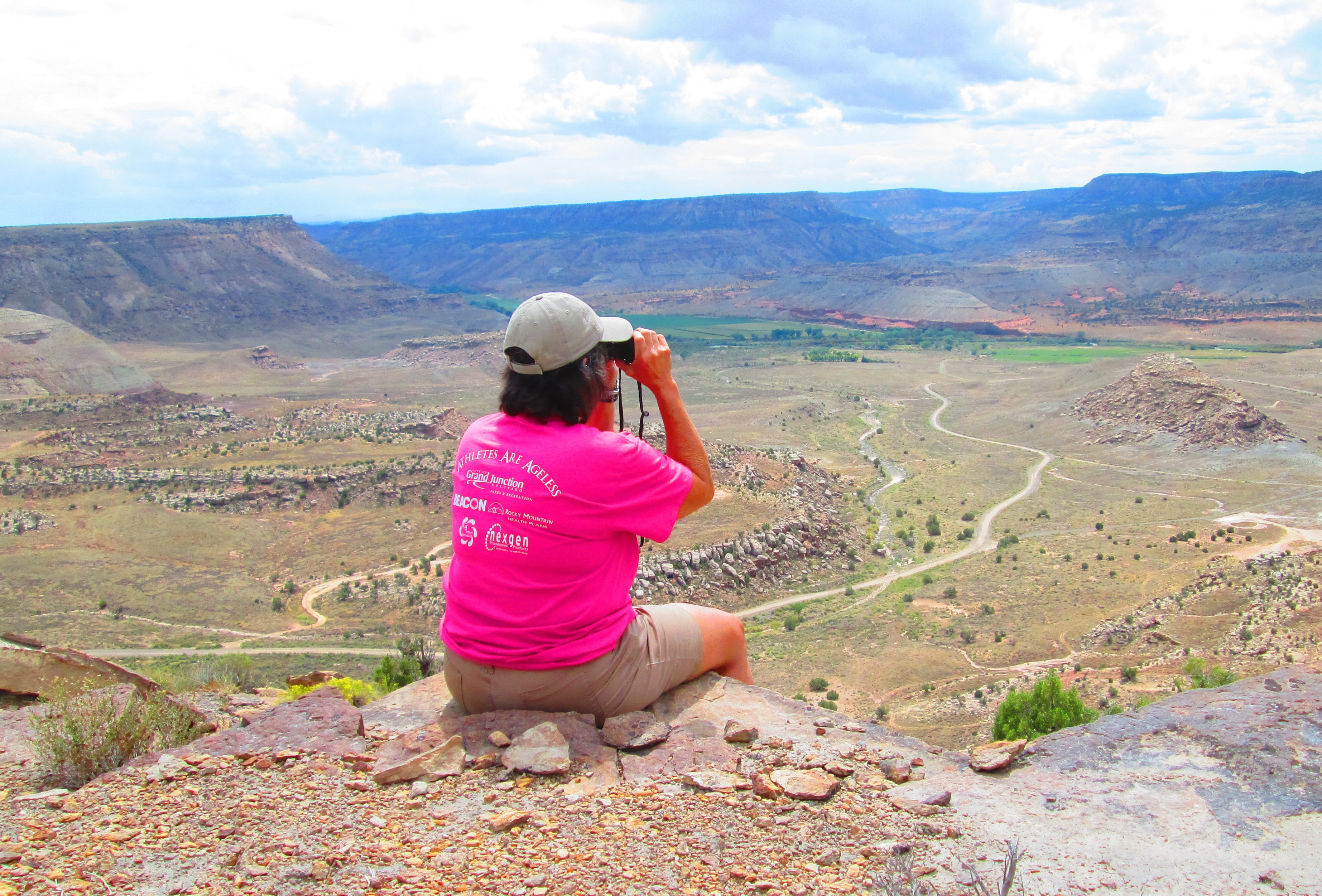 Betty scans the Gunnison River valley between Escalante and Bridgeport.  We’re across the river from the Dominguez Wilderness Area, visible in the distance.