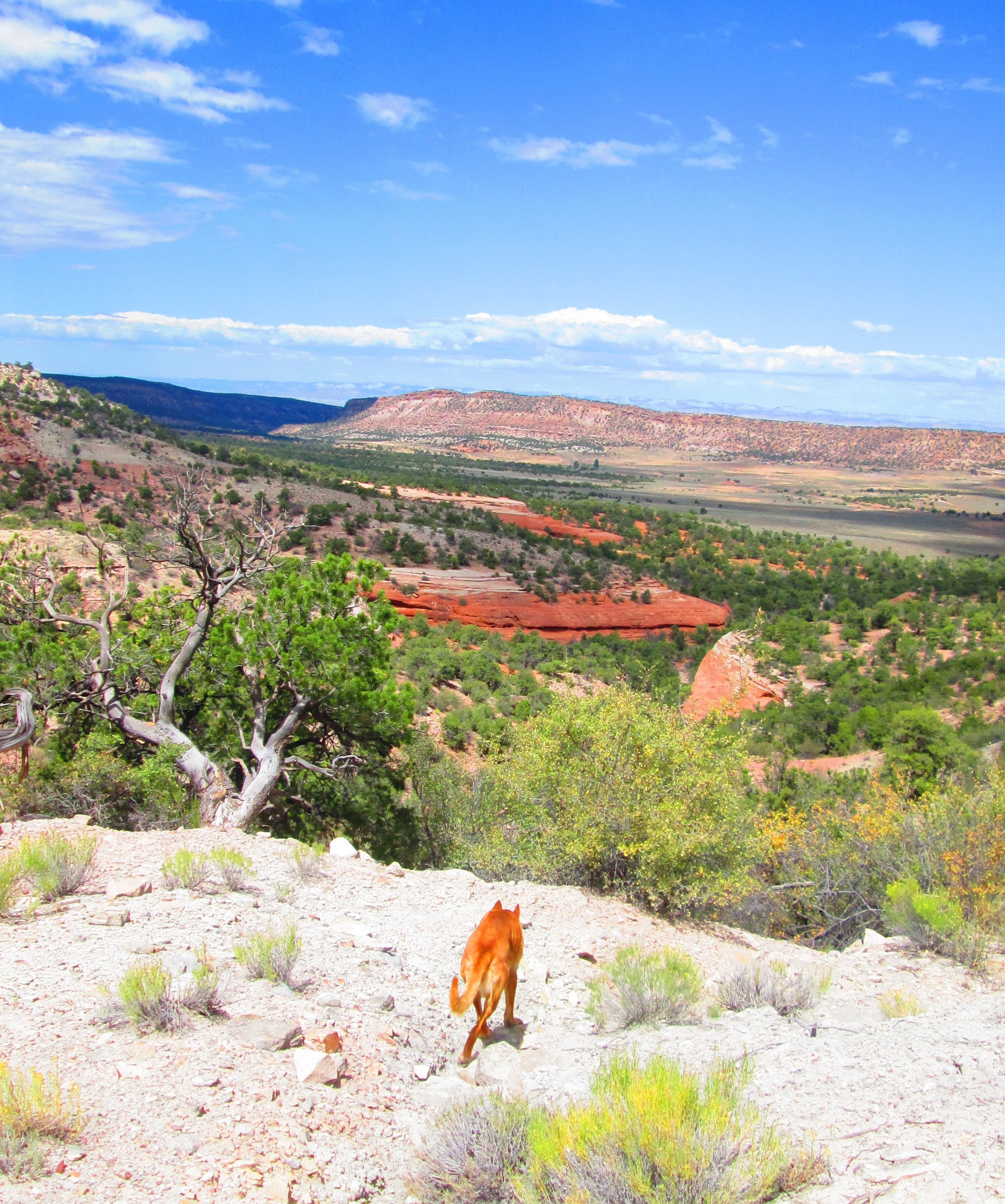Scrambling down, we encountered a lower road, or trail.  At this point, it was ob(de)vious that even da dorgz weren’t all that enthusiastic about going UP this lower trail.