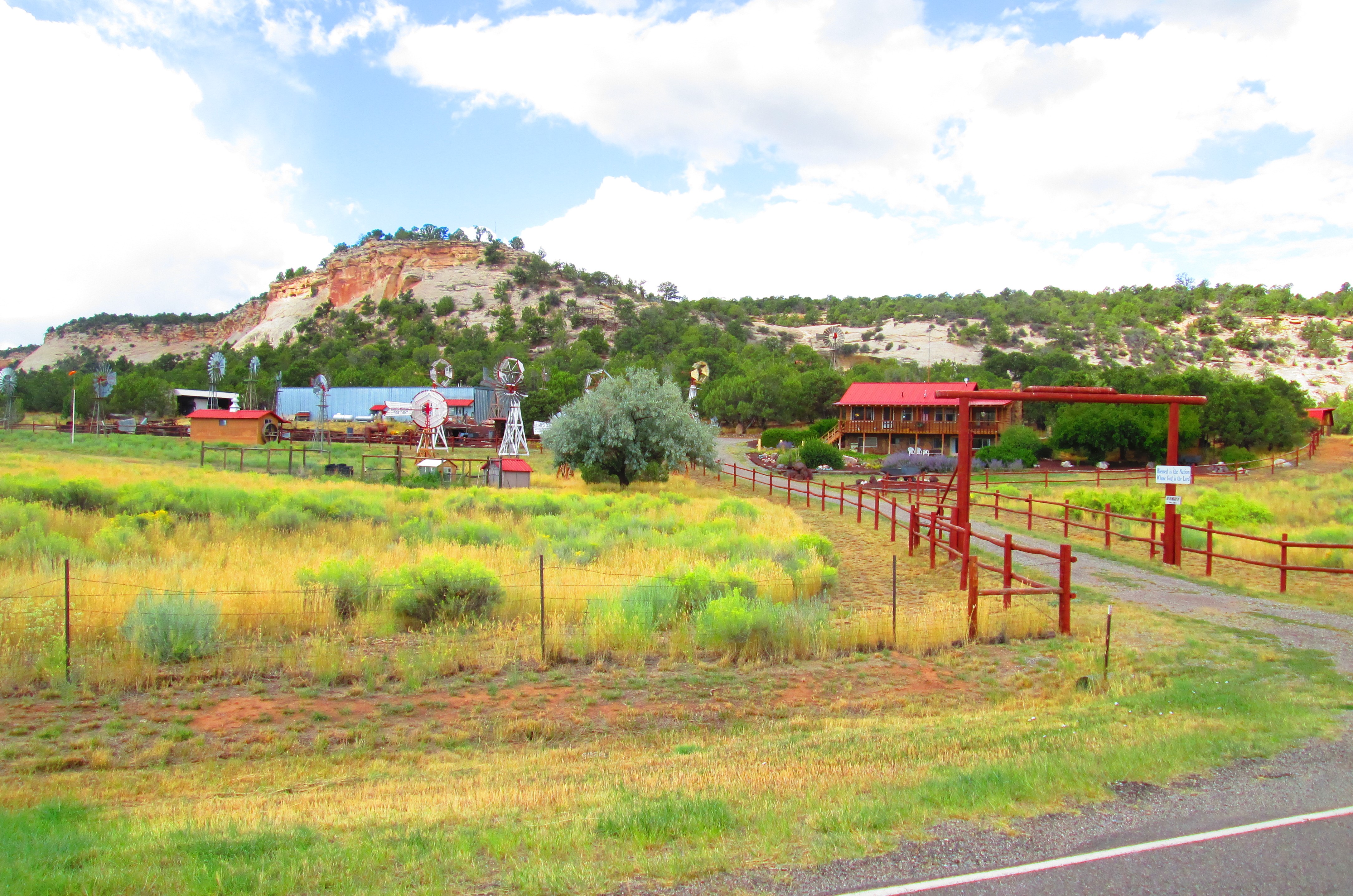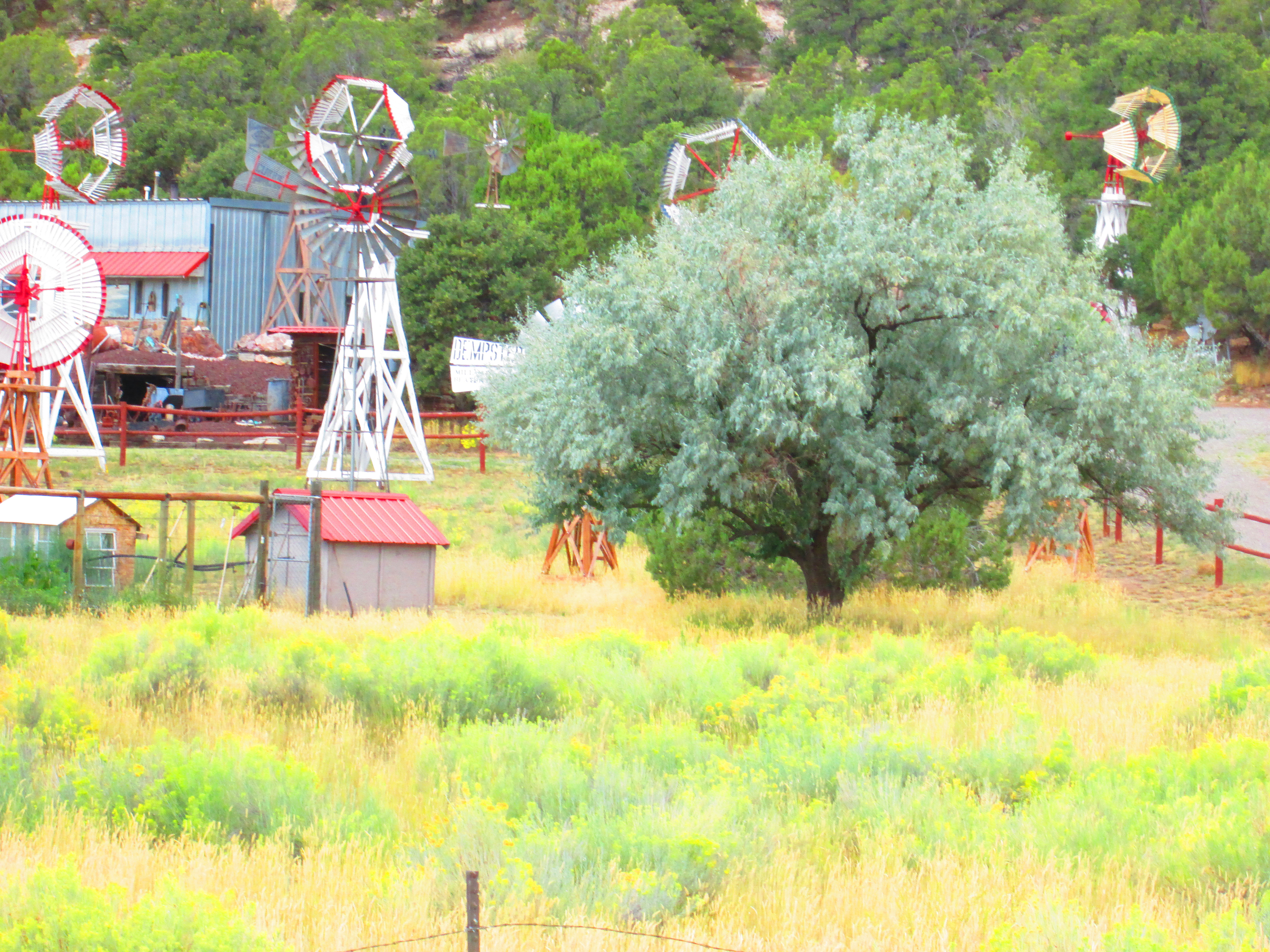 The wind-powered ranch, across the local highway from arch.  We drove through Glade Park on an early autumn day, all the way to Utah.