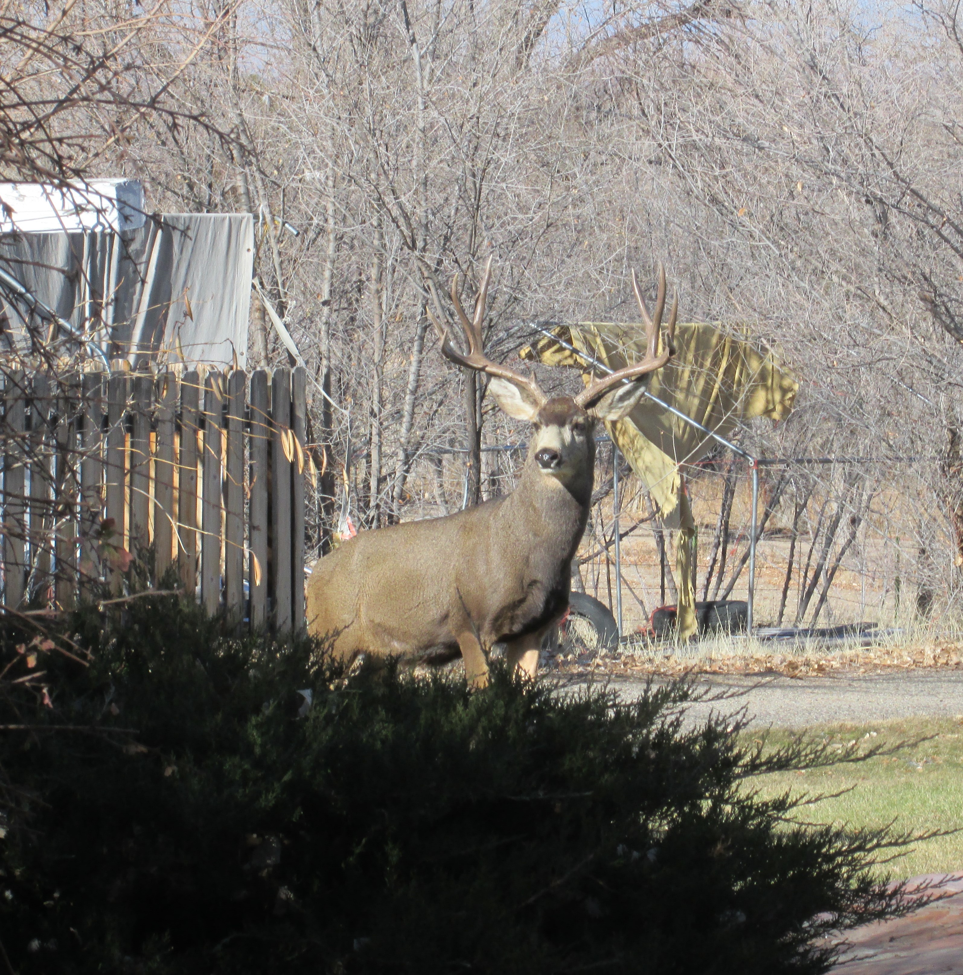 2. yeah, we been watchin’ the buck grow the past couple years ~ the peacock (as we’ve previously discussed) is one of the last of the famous Mildred Burkey flock. “Kevin” has adopted our house. Yeah — Triangle Mesa 4WD road is (as you know) right off (Delta/Mesa) county line road off US 50 ~