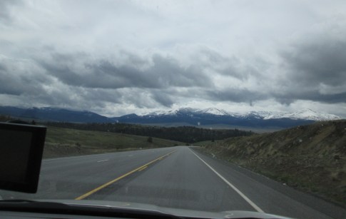 Above, top of Dixie Pass — measured at 5,280 feet in elevation. (Hmmm …) Below, we’re descending from the Pass into the headwaters of the John Day River valley — the Strawberry Mountains (& Wilderness) beckons. Well, as-best-as-can-be-beckoned in the unsettled weather.