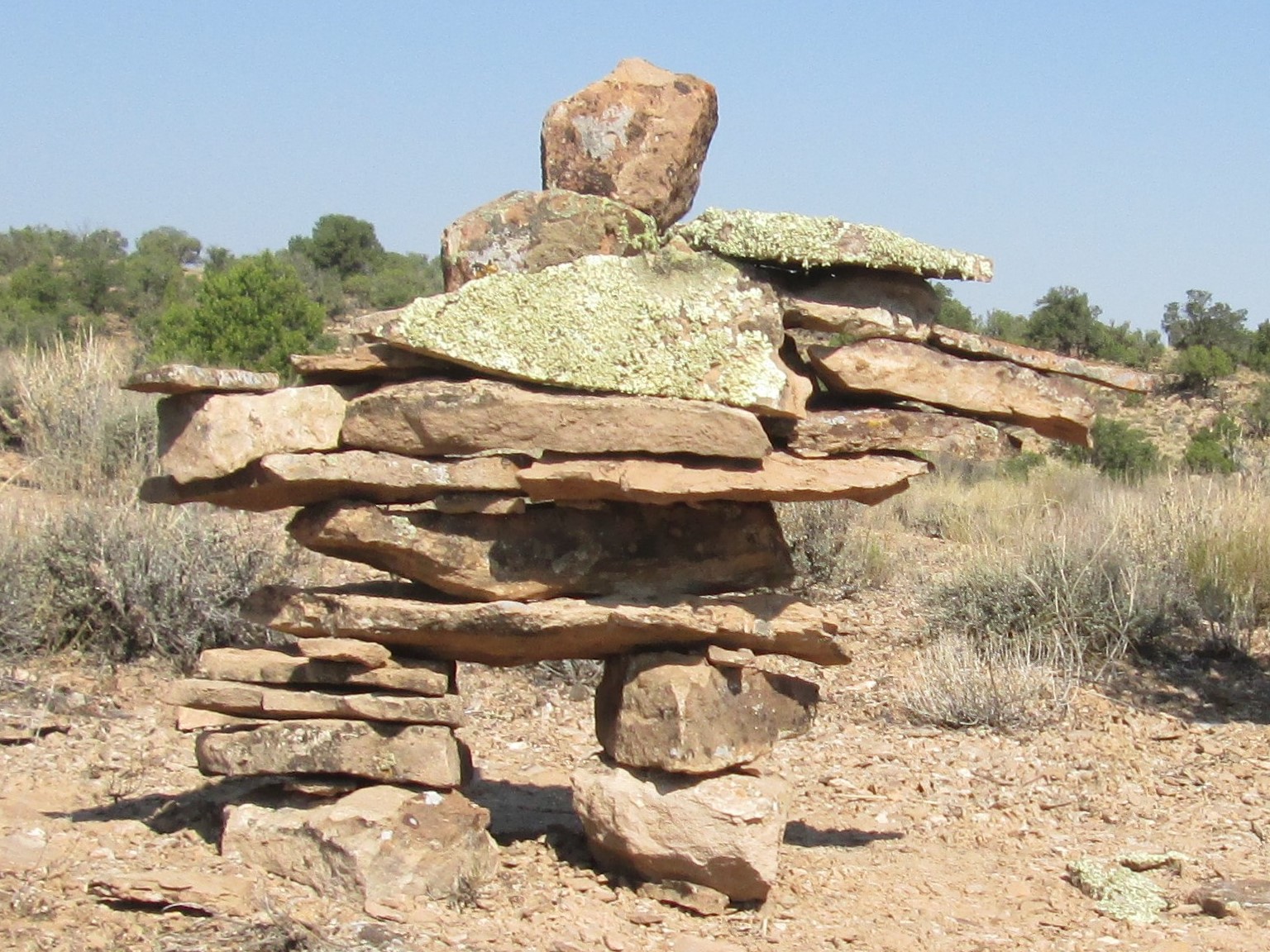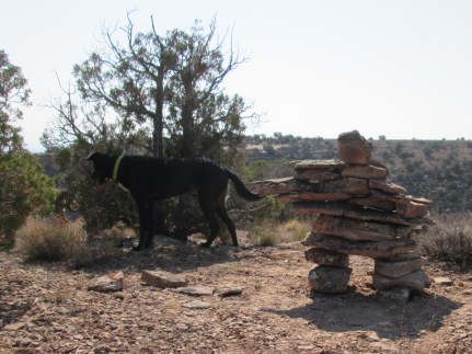 We climbed over 1,000′ in elevation in about two miles, taking us from the Escalante Creek valley bottom up to the top of a mesa.  Upon attaining the ‘top’, the average gradient went from 10% (per mile) to much less than that, practically level.  We encountered this inuksuk (“inunnguaq” if it somewhat resembles a human figure) off the trail.