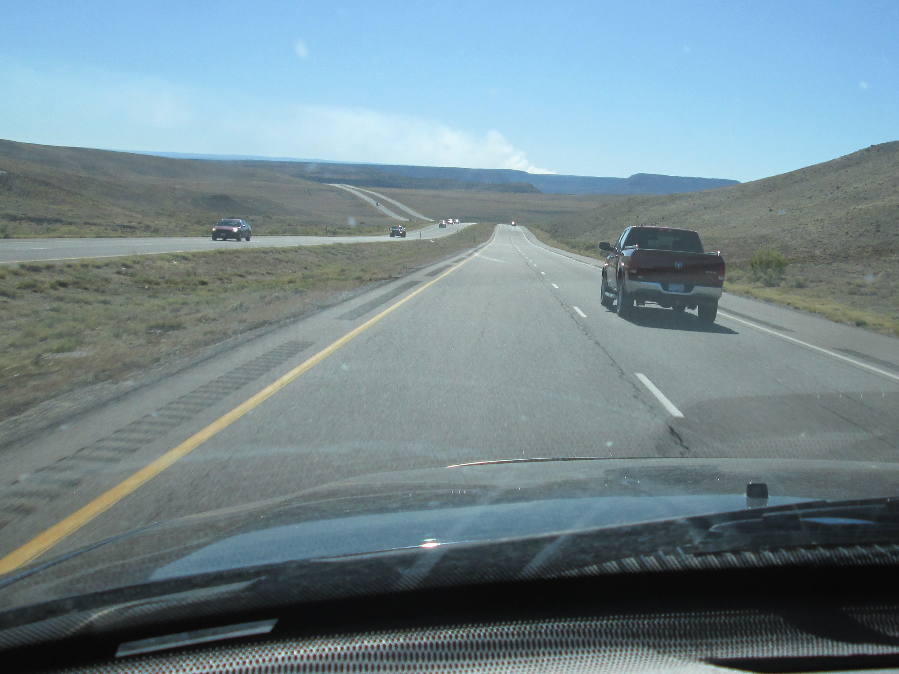 I was driving south towards Delta (Colorado) on U.S. 50 — to go on a desert bike ride and also give the dogs a work-out. Not too long before I noticed the “tell-tale” plume of smoke in the distance.