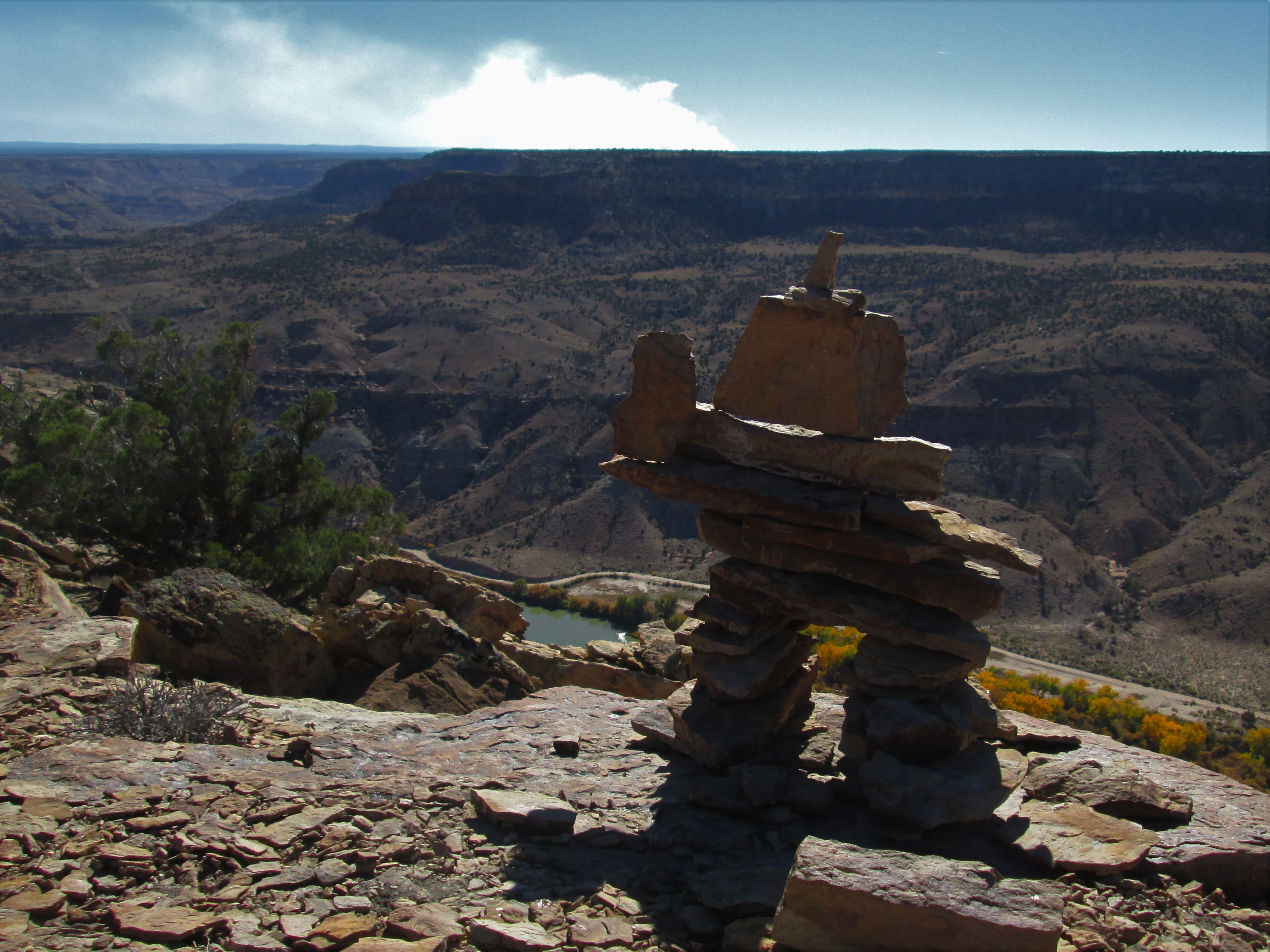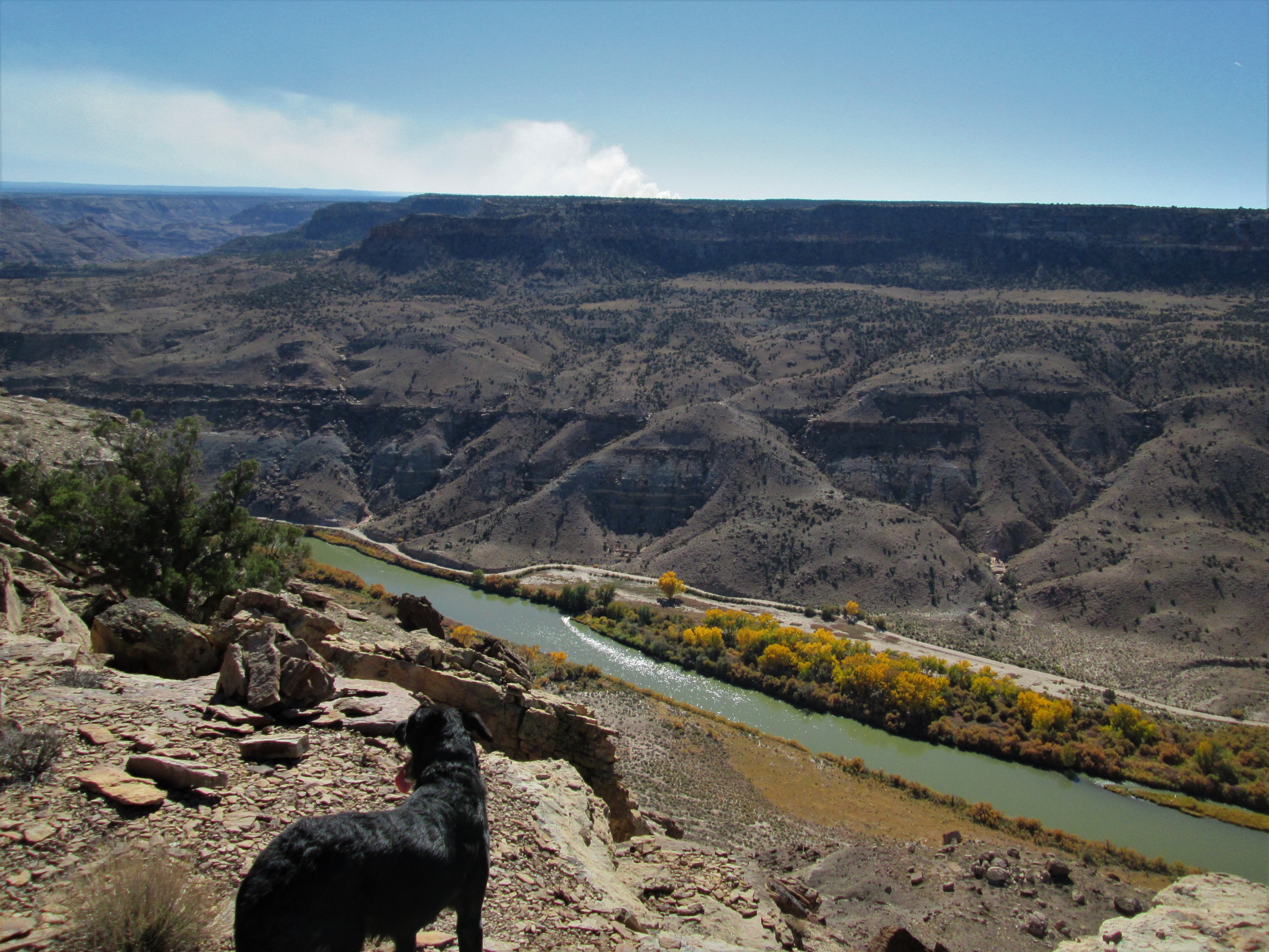 I figured this unfortunate event (it’s not a “controlled burn” — is it?!) was inside the Dominguez Wilderness Area. Could be just north of Escalante Creek — perhaps up the McCarty Trail. Jake takes in the view.
