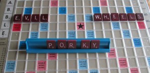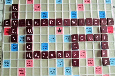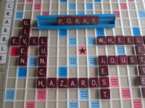 She put ’em right where they’d fit, sat back, waited for the inevitable response(s).  Now, during the play of many (most?) Scrabble games there might (there … just … might) be some discussion.  Complaint(s).  “Let’s check the dictionary.”