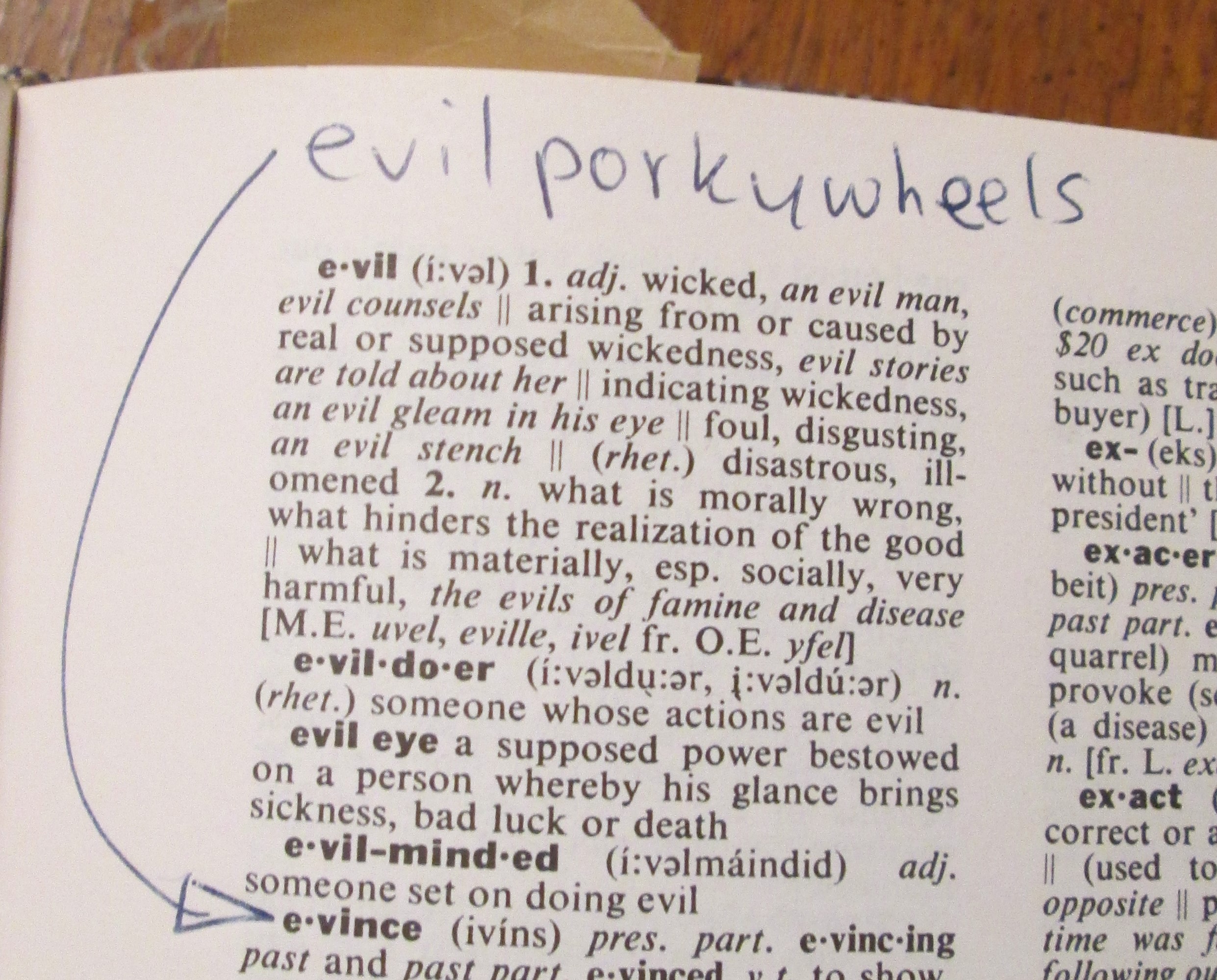 Inevitably, this led to some further conjecturation as to the nature, the definition, the limits, the over-all definition as to what EvilPorkyWheels may, or may-not, actually mean.  Such as …