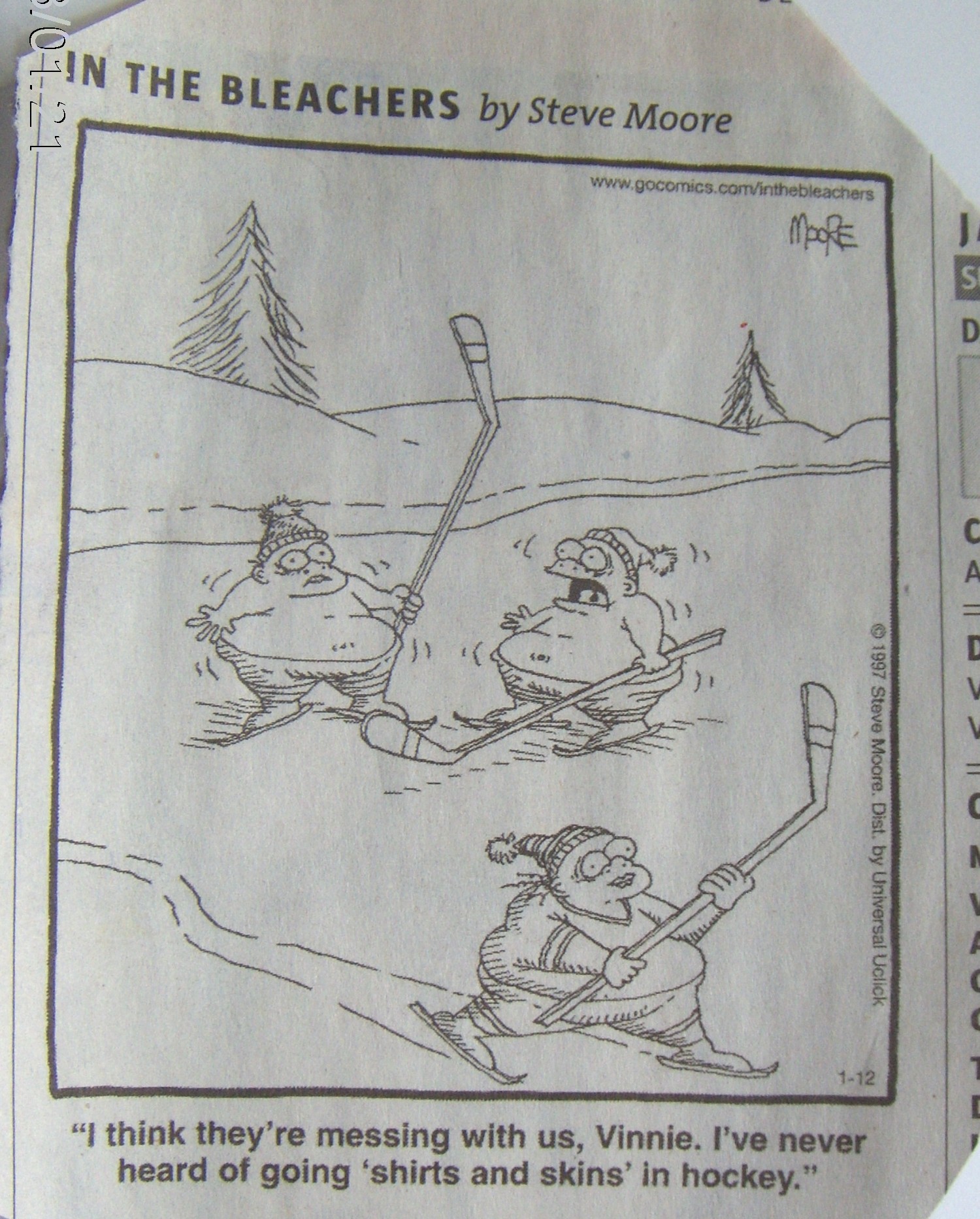 Betty decides to go watch. As I show up, Rich has a ‘quirky’ look on his face. He talks to me in the locker room. Due to the other team’s complaint about the previous game, the hockey Director made the decision that we could use Rich as a goalie. I joke that perhaps I should play just the first and last minutes. We’ll see…