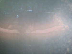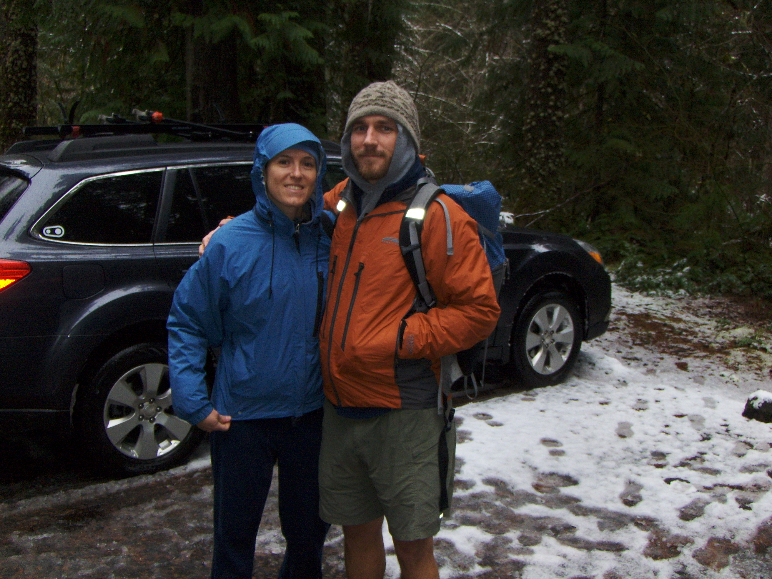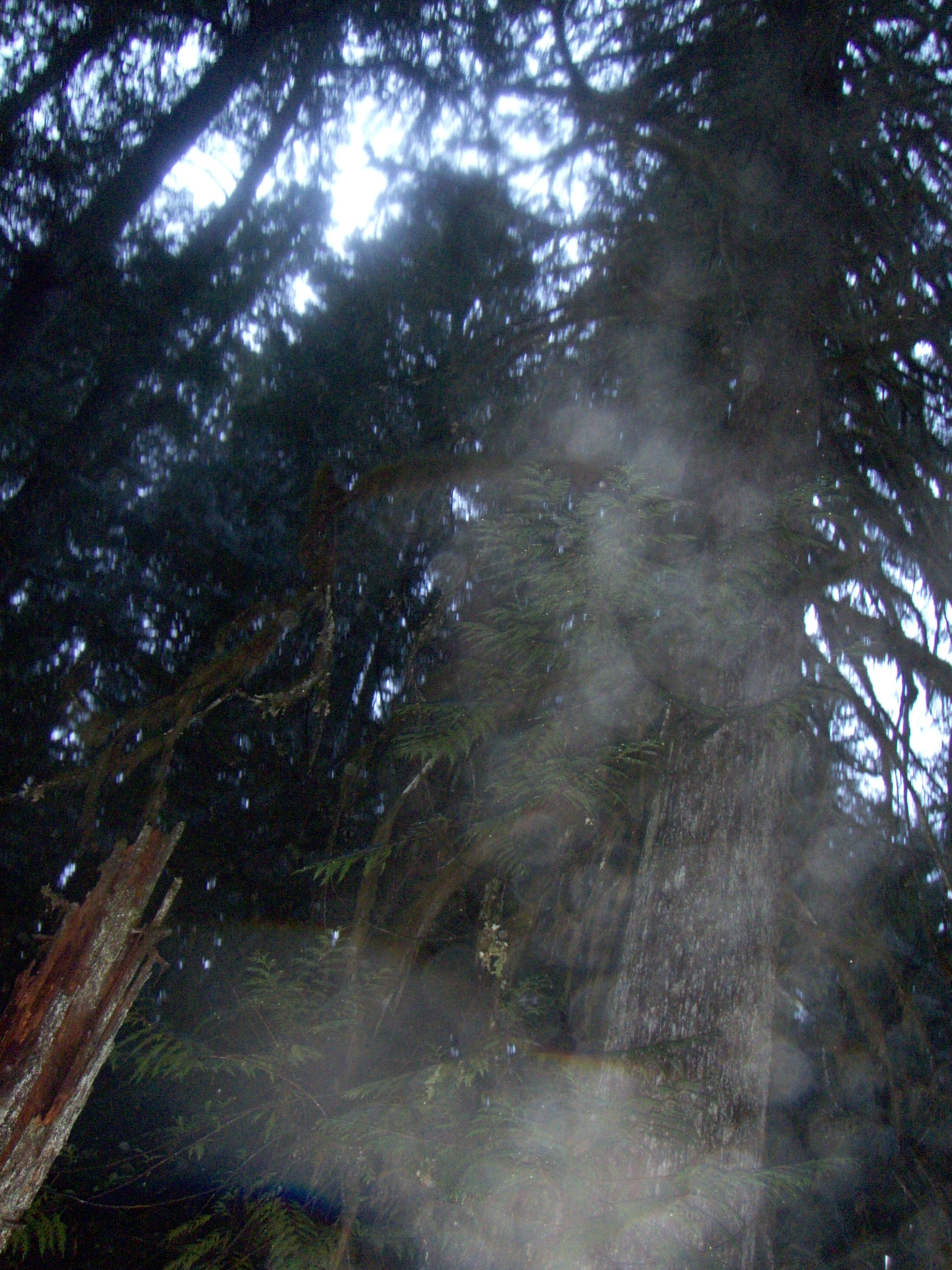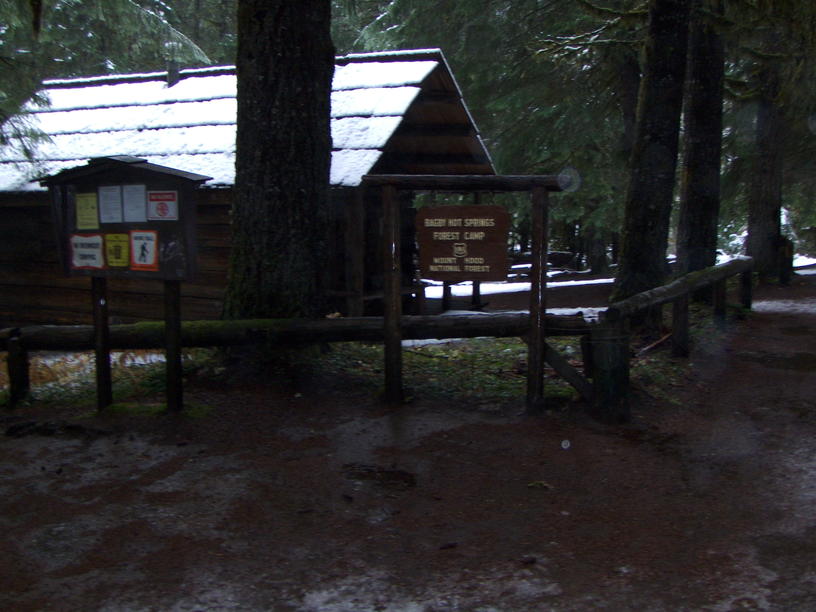 Ben and Raytsch took, pulled, left me on a slorshy foggy forest path along the upper Clackamas. (I KNOW I would have been much much more apprehensive and attentive to my parents under such circumstances!) In spite of frequent reminders of the movie “Romancing the Stone” where our hero(in)es slip-and-fall down a hill thru’ the sheet-flood-rainy hillsides almost to the river below, fortunately I did not slide thru’ the sharp rocks and broken ends of stumps and branches into the 33-degree rushing Clackamas. It was highly possible, verging on probable, however. A good scary adventure and workout. Followed by a verging-on-extradimensional soak in a large hot-tub adjoining a wilderness area further up in the mountains.