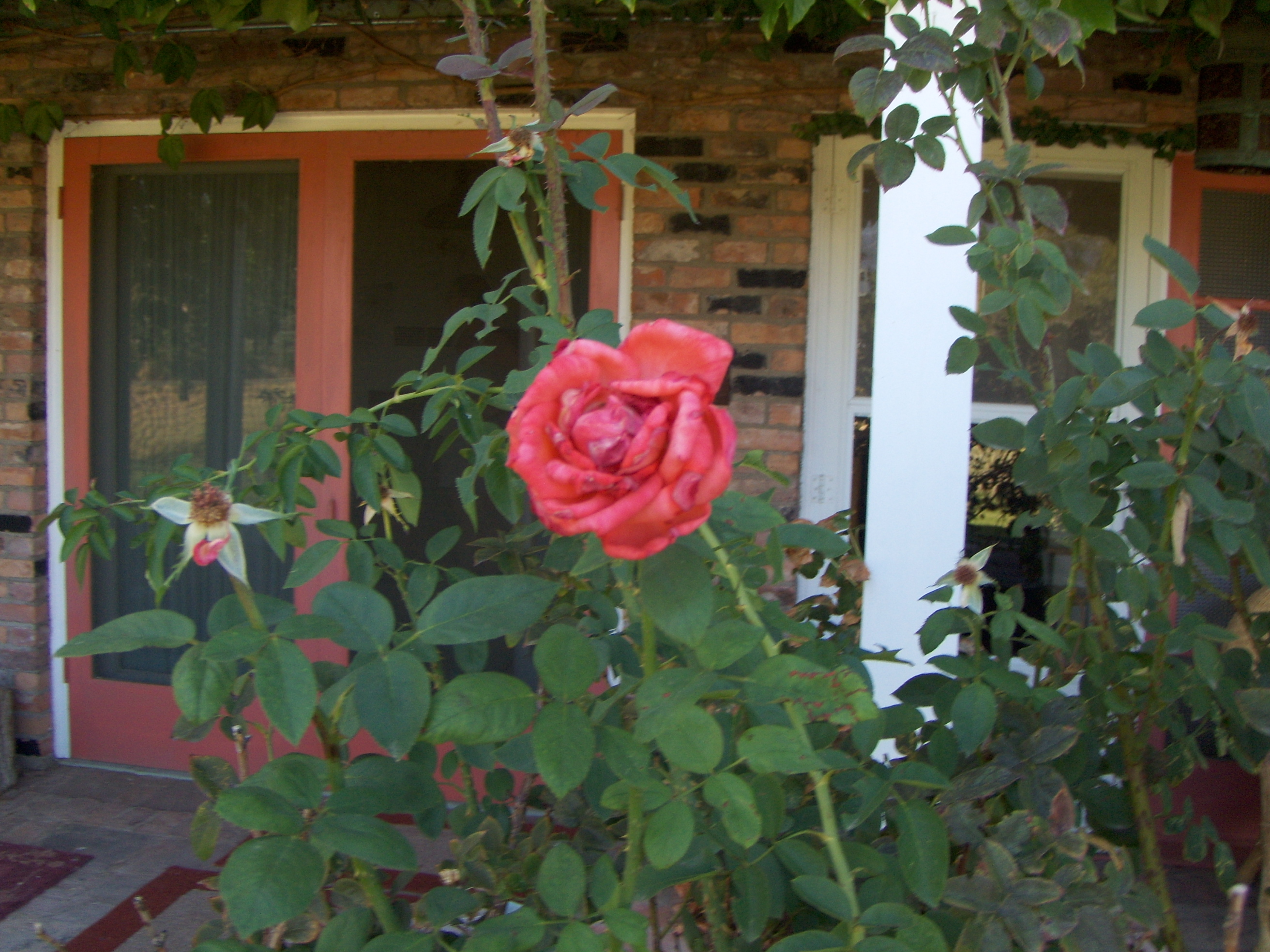 The people who built our house, almost 60 years ago! were the only inhabitants ’til we acquired it some 20 years ago. Yeah, “my, how time flies” — or the maggots self-propagate, or whatever. Anyhow, the lady of the house took pride in her roses. Won ribbons at the county fair. It’s amazing the roses persevere, regardless and definitely IN SPITE OF our continuing benign neglect. Above is just about the last rose of the season.