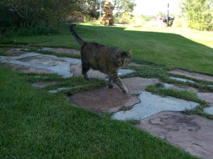 There aren’t many pixures of Terry, or sometimes “Serena.” Terry struts down the walk and by choice/volition doesn’t get out much. (At first I didn’t notice the Inuk-of-the-Lower-Yard, at top).