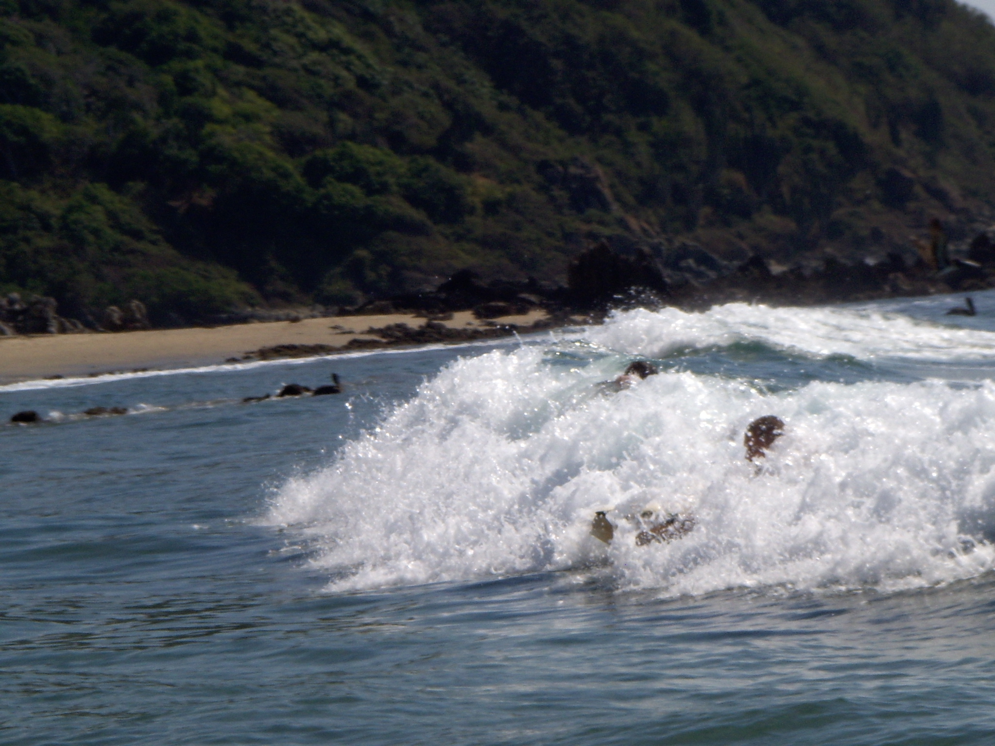 We arrive at Justice’s. No-one home. Our chauffeur asks if we want to go to the beach. Smerdyakov (and possibly huzz?) had never seen the ocean before. She drives us to a nearby beach – zuma, i think. Remember, it’s mid-February, and, for the locals, it is cold. Not for us. Pausing only to remove our shoes and wallets we charge right in. Groups of locals wearing jackets stop to watch us frolicking. Our lady-friend calls out to us that she is illegally parked and has to move her car to another location. All our stuff is still in her car. The thought briefly intrudes that this is the big moment she has been waiting for – it would be easy to drive away, later to leisurely catalogue our backpacks and other valuables. Well, maybe sorta valuables. I wasn’t too worried. She had been a saint so far, and things in general had just been too excitingly weird. She waits 45 minutes until we’re borderline-hypothermic and splash back to shore.