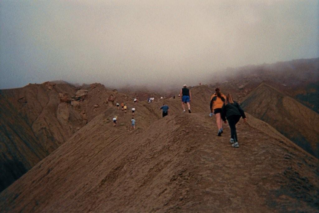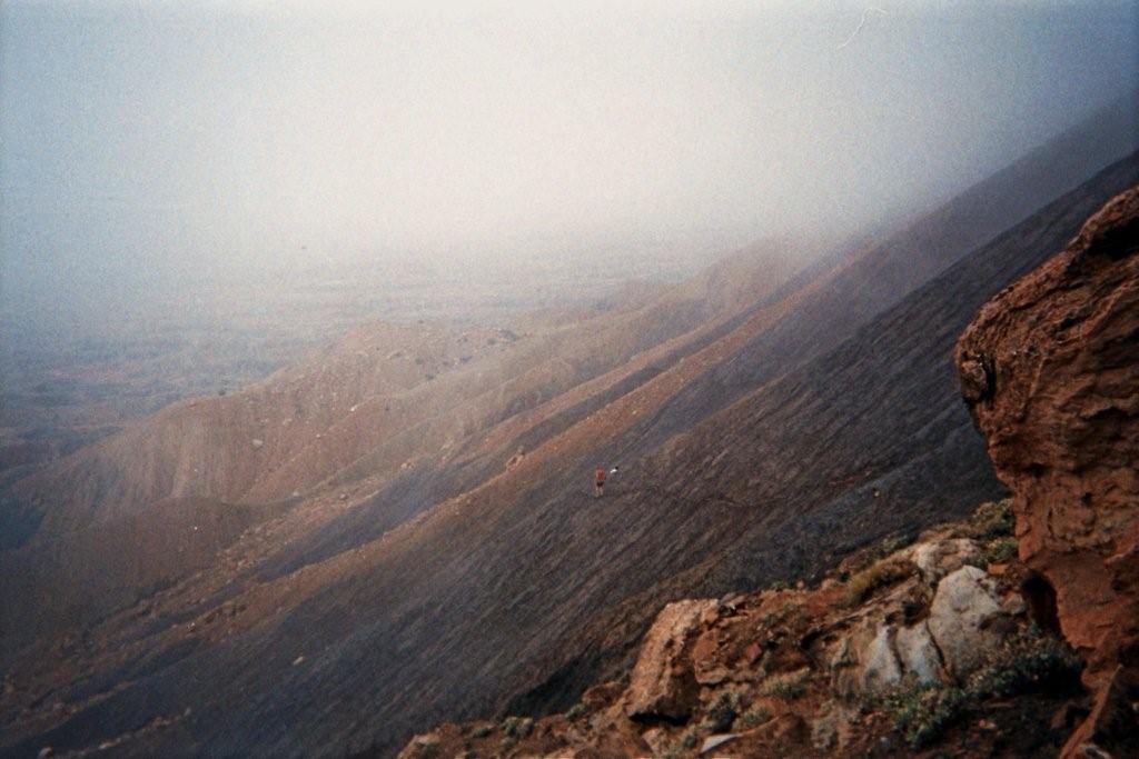 Two more runners came huffing up, sipping the obligatory water, shaking another cup over their steaming heads, and the four of us continued towards the descent. “Dizzy guy” kept Top of the Hill Aid Station Girl company for a while longer.