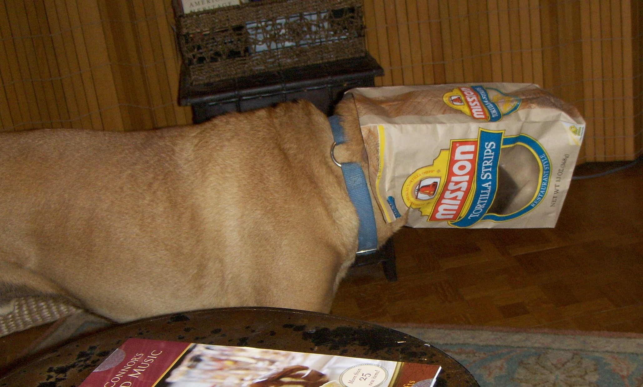 Sleven stumbled about, and when all the nacho crumbs were inhaled, or completely slobberated, the bag either partly disintegrated or somehow disappeared.