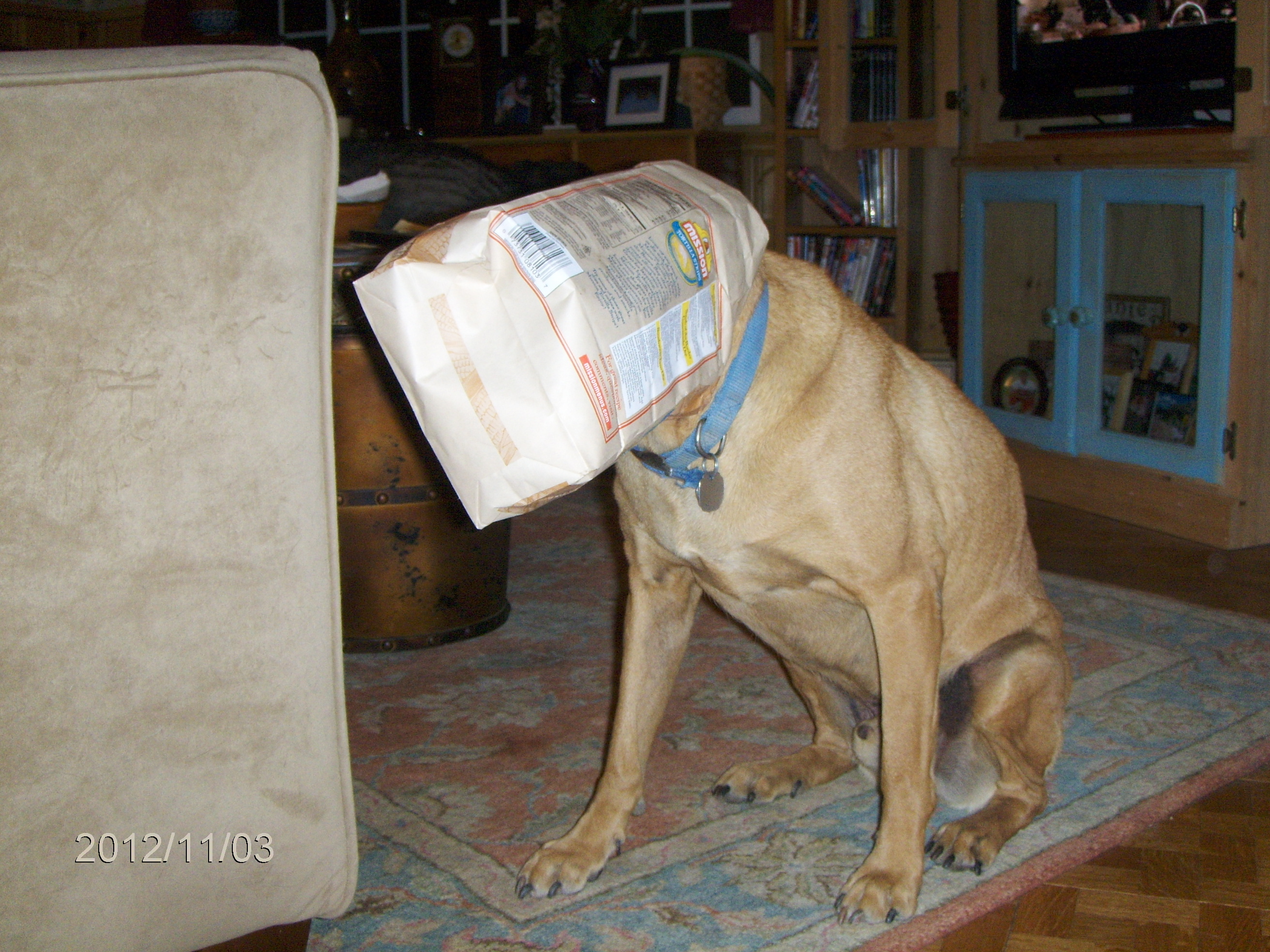 Sleven found a mostly-empty bag of nachos and went in to finish off the crumbs. He prowled around the house like the bag-head-monster that he inherently is. I considered taking the bag off, but it did have a transparent window, diminishing the banging-into-doors and walls a bit. (He eventually extricated).